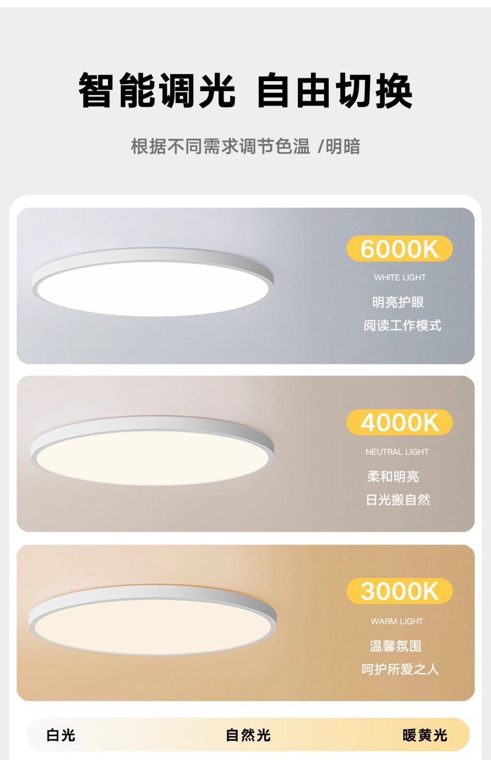 Lámpara de techo ultrafina de espectro completo, lámpara de protección ocular, lámpara de dormitorio brillante, lámpara redonda luminosa lateral Preh americana, lámpara Zhongshan