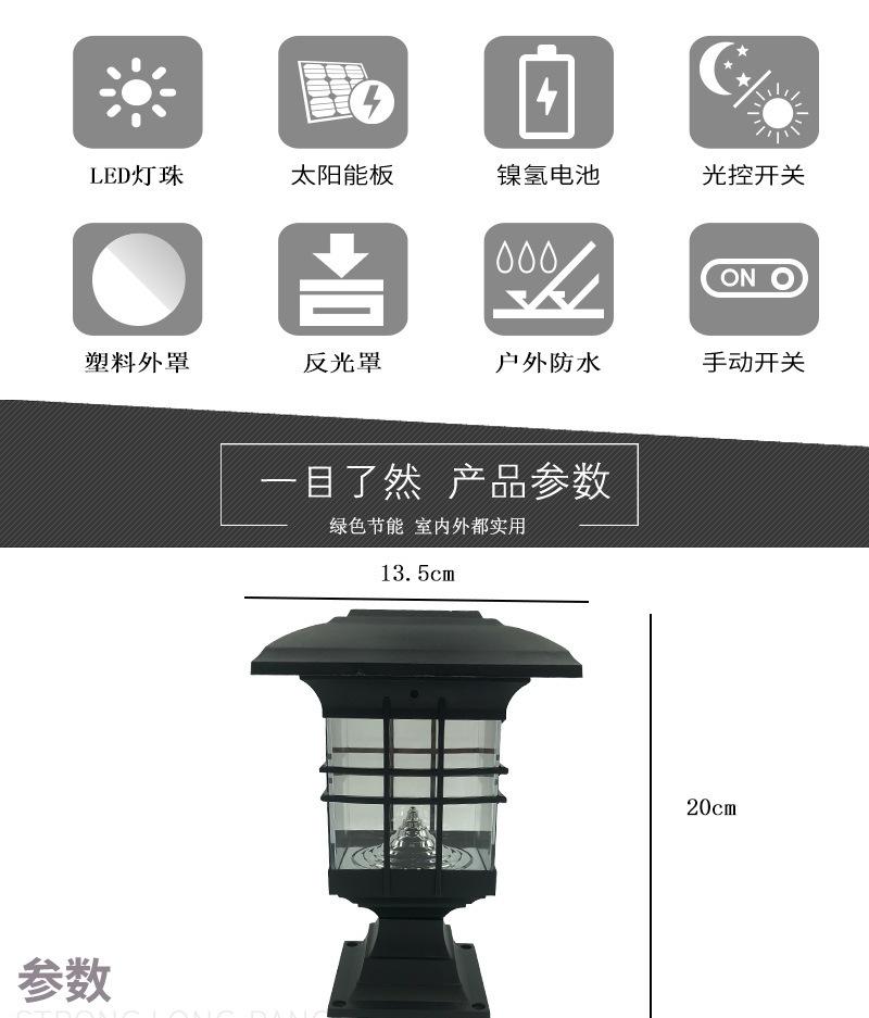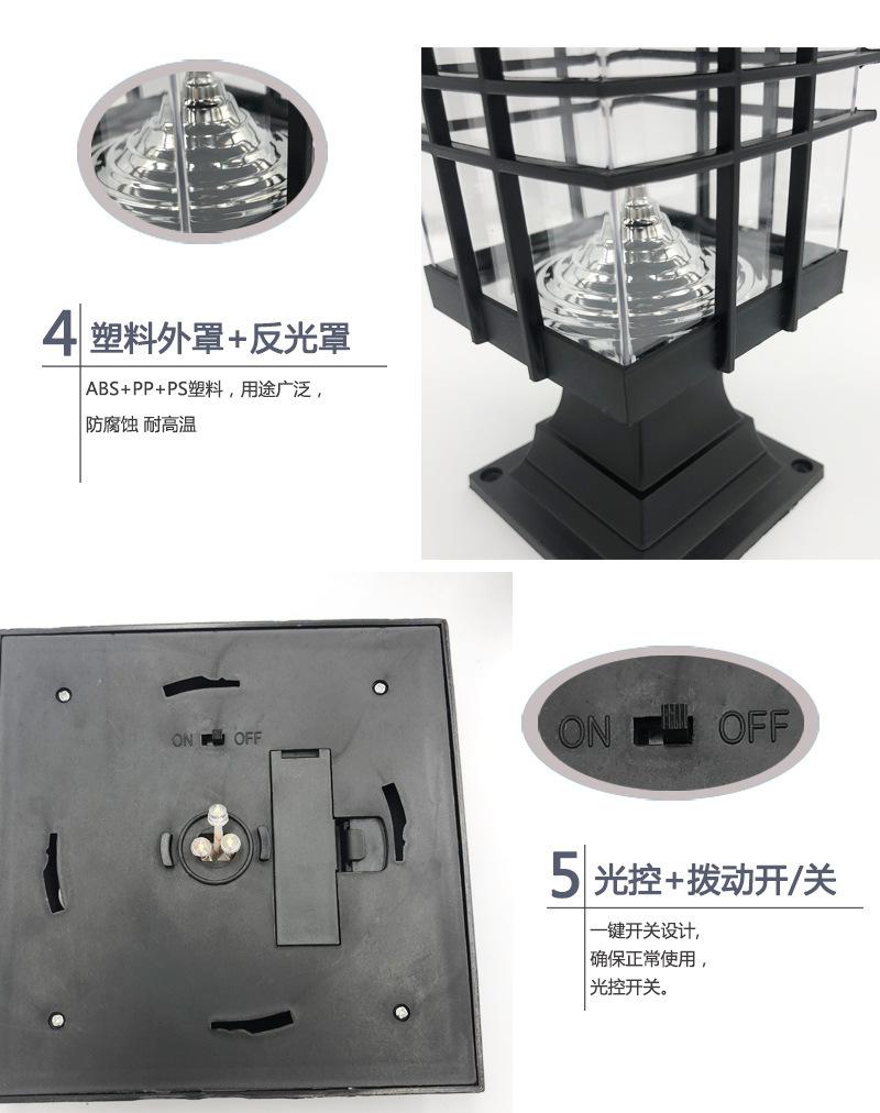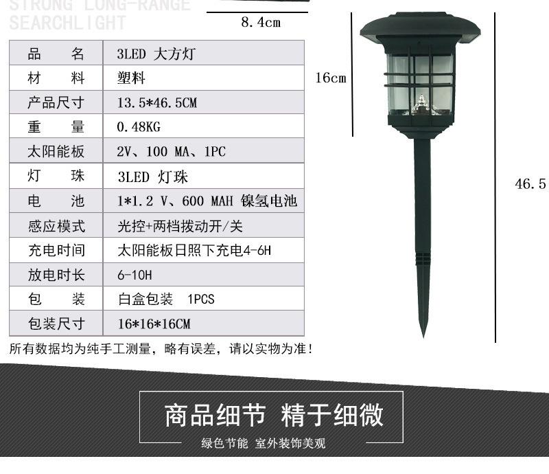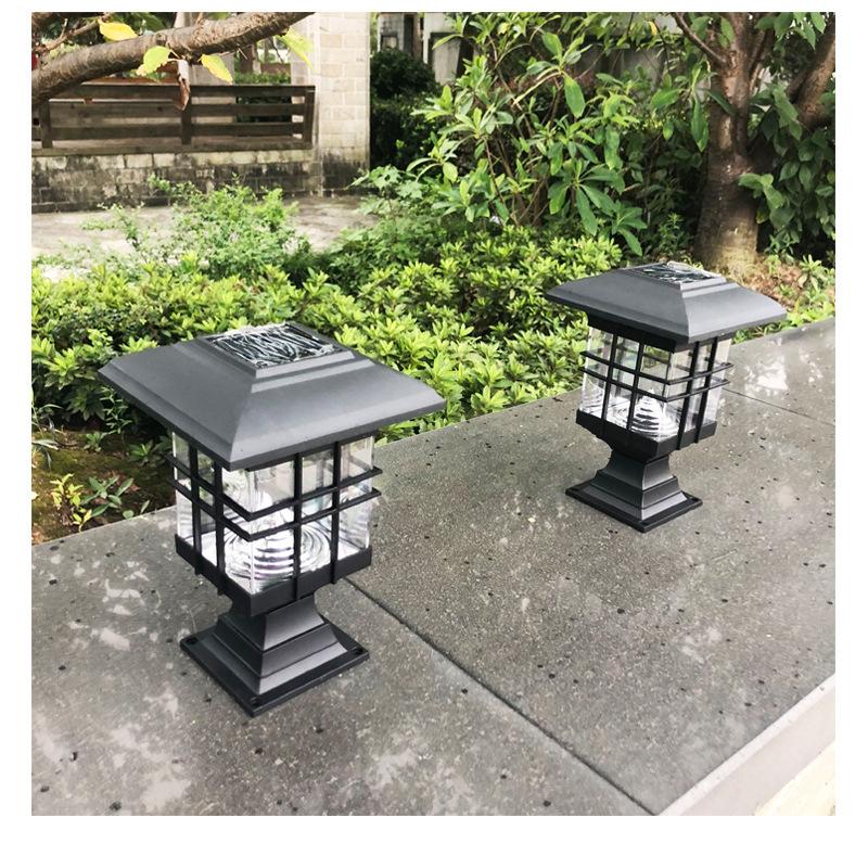 Luces de Cabeza de Columna Cuadrada Solar de 3 LED Luces Generosas Exterior Impermeable Luces de Jardín Luces de Césped