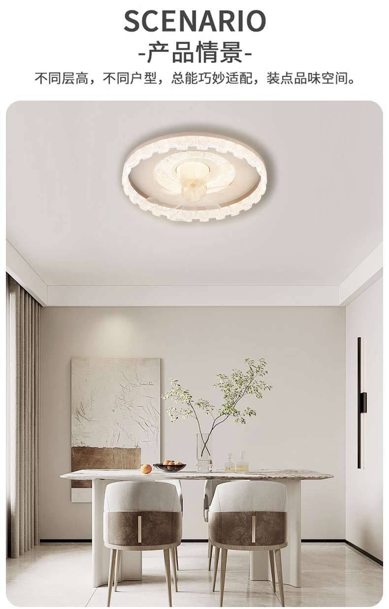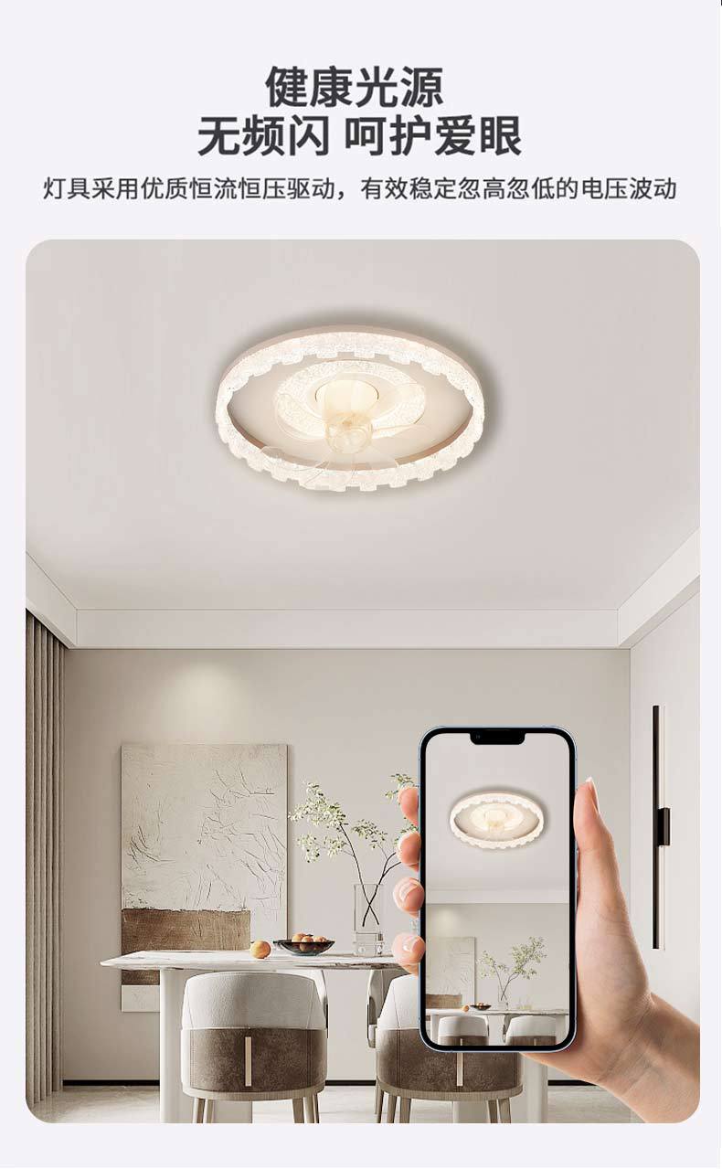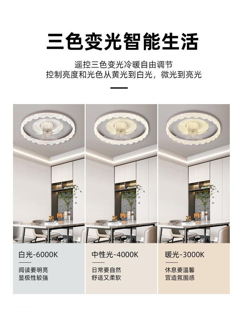 Lámpara de ventilador de dormitorio, techo integrado, restaurante, estudio de espectro completo, voz inteligente con ventilador eléctrico, iluminación de decoración del hogar Zhongshan