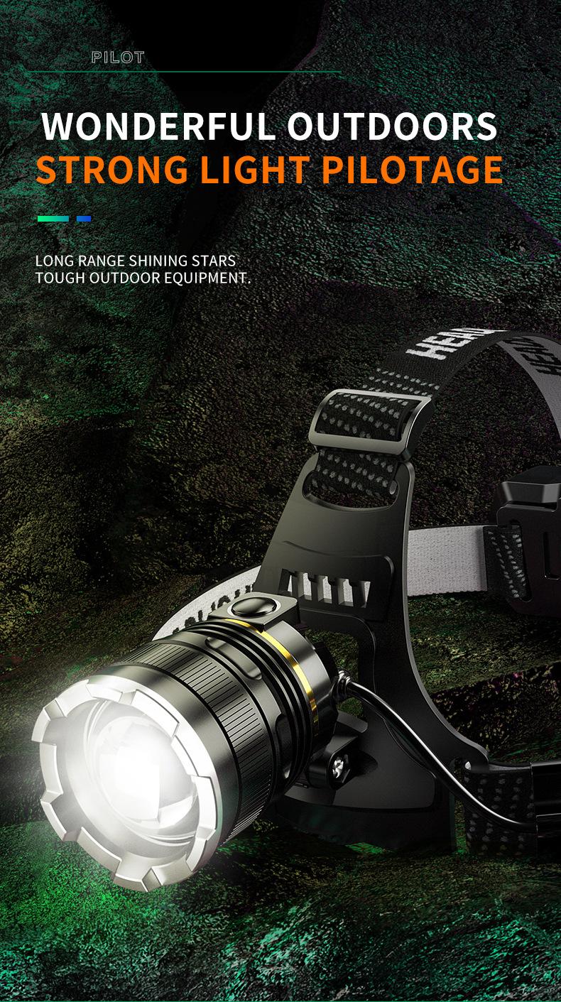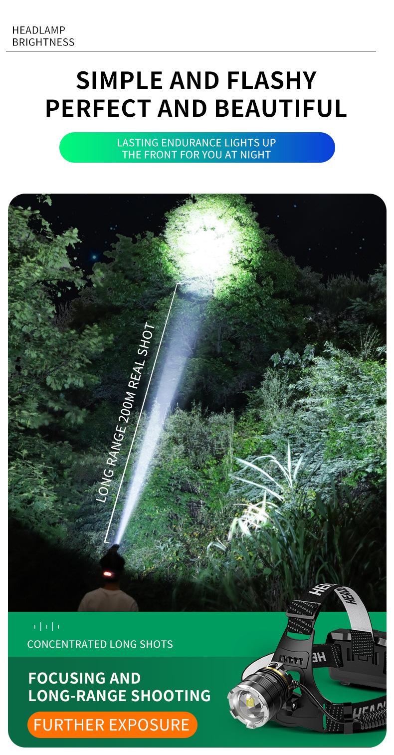 Linterna frontal transfronteriza brillante, recargable, montada en la cabeza, P50, para pesca nocturna al aire libre, iluminación exterior de larga duración.