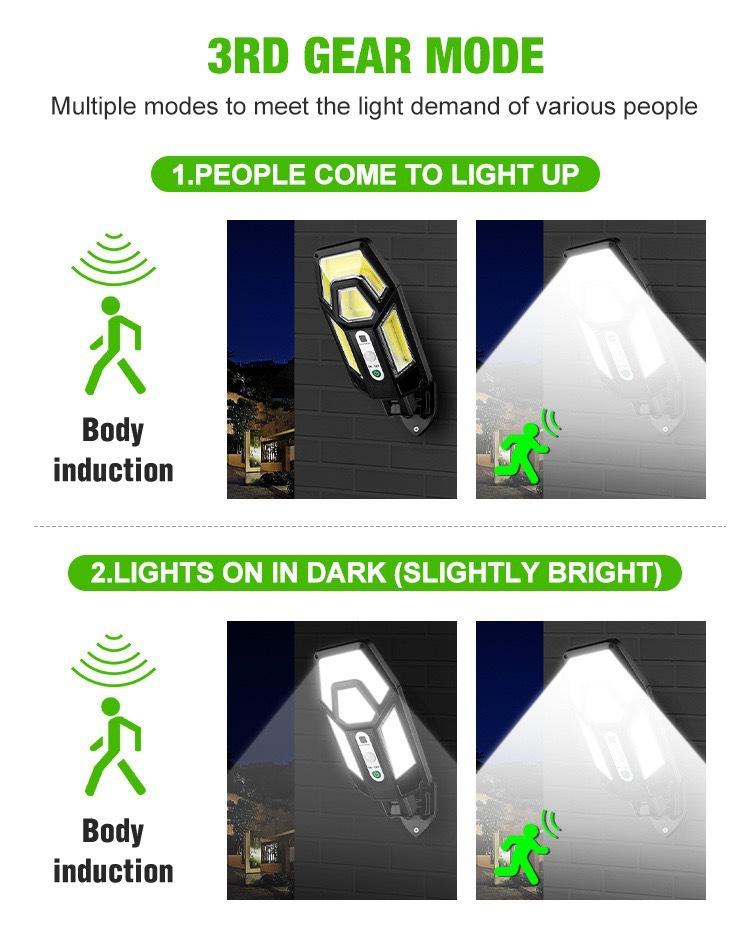Tres modos: 1. Modo sensor (se ilumina cuando llega gente, la luz se apaga 20-25 segundos después de que la gente se va) 2. Modo sensor + atenuación (se ilumina cuando llega gente, la luz se atenúa cuando la gente se va, la luz se atenúa al 10% de brillo)