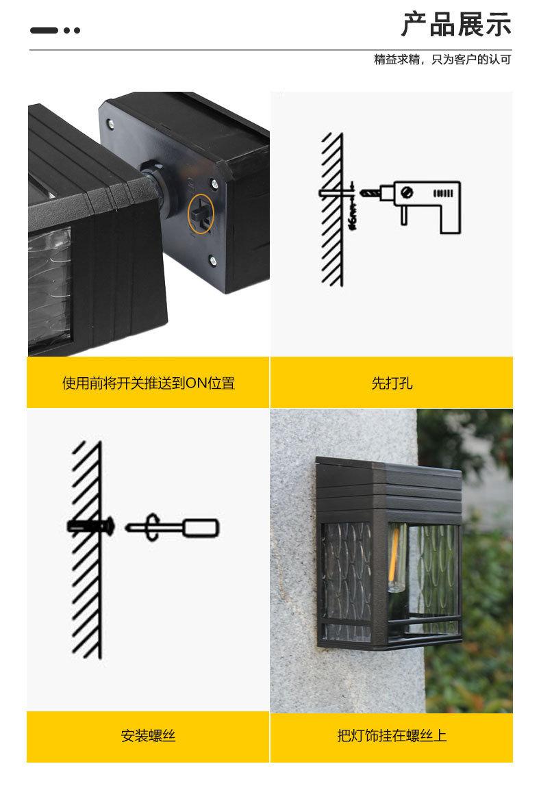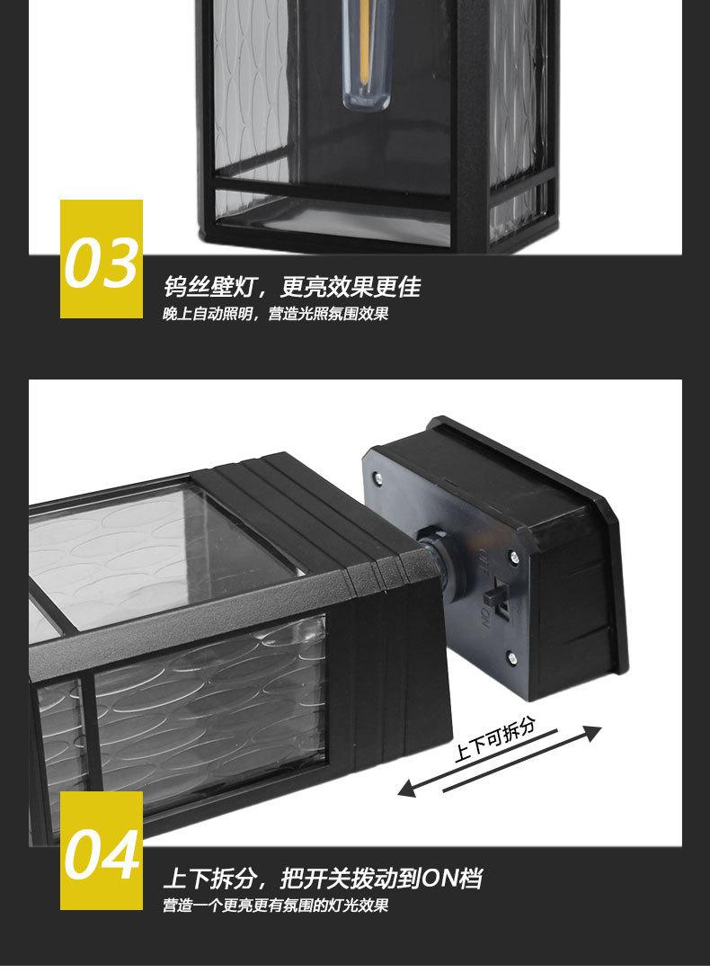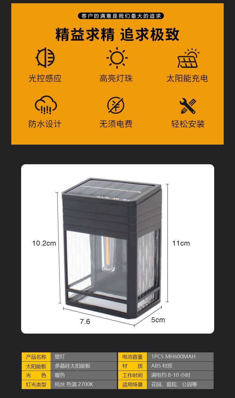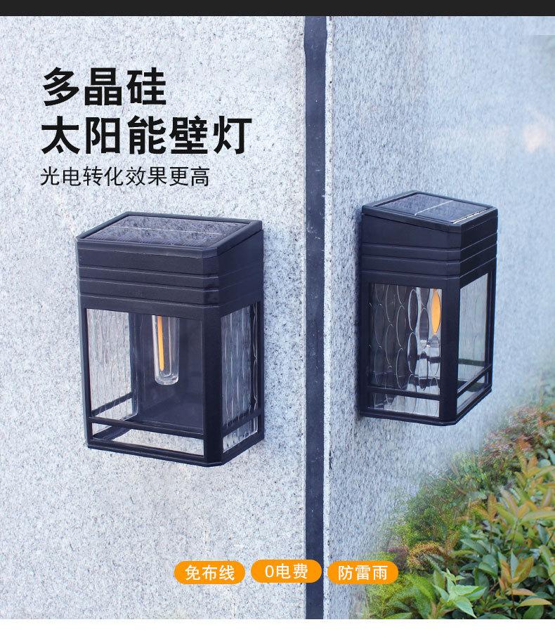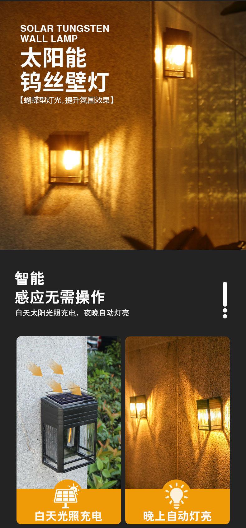 Nueva lámpara de pared solar para exteriores, lámpara de tungsteno cuadrada impermeable para exteriores, lámpara de jardín de inducción, luz nocturna para villa de jardín
