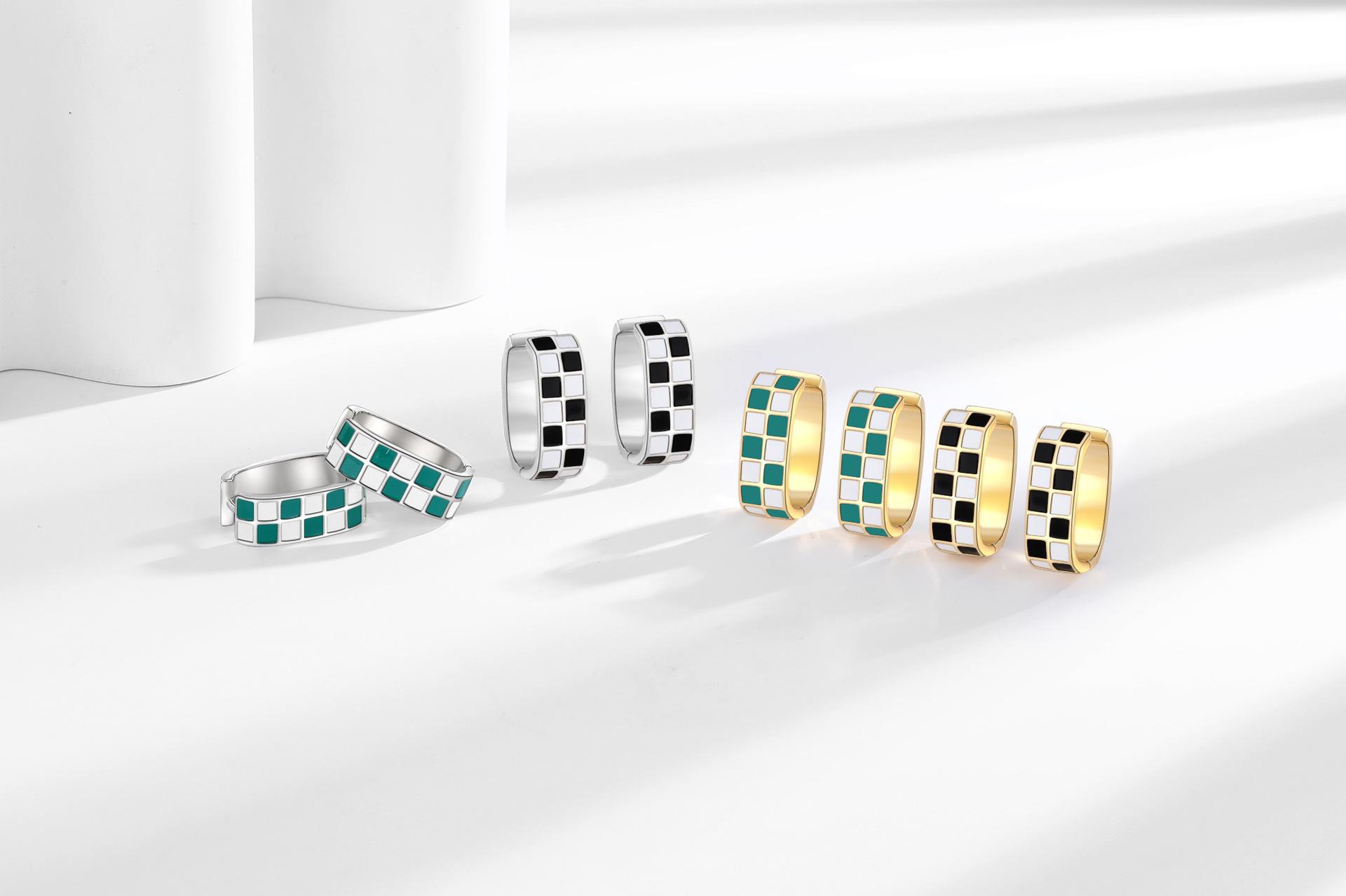 Platinum-black and white grid, Gold color - black and white grid, Platinum-green and white grid, Gold color-green and white check
