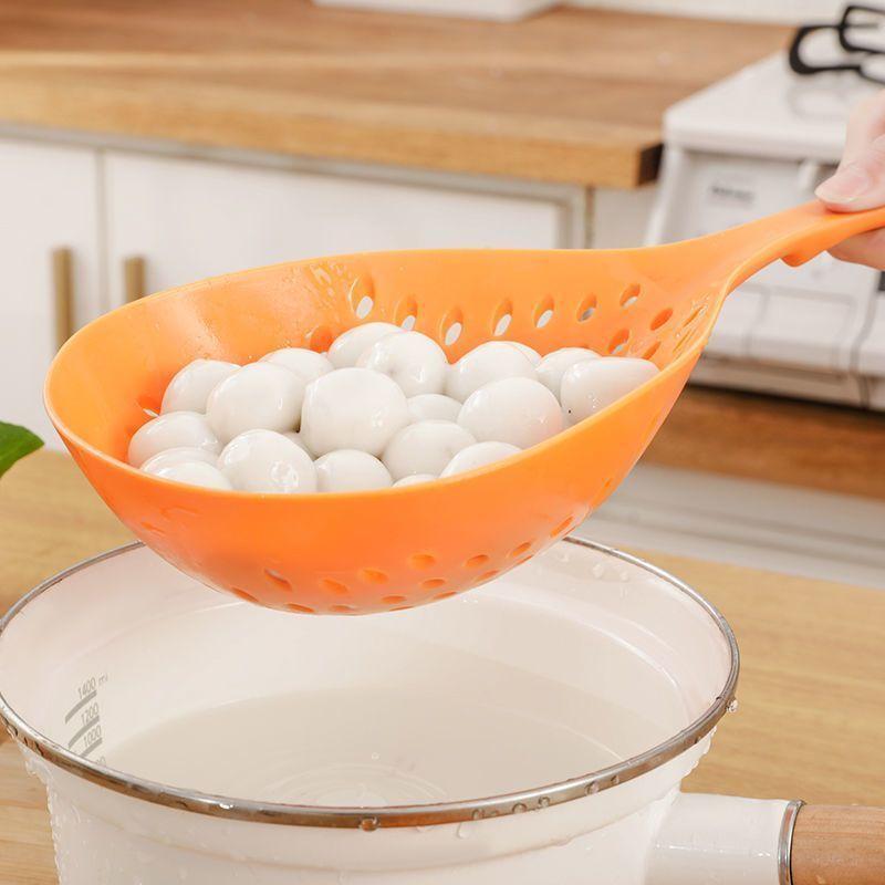 Colador Grande Doméstico Colador de Malla Grande Resistente a Altas Temperaturas Cuchara Escurridora de Agujeros Gruesos Comedor Engrosado Antideslizante Mango Largo Colador Grande Plástico