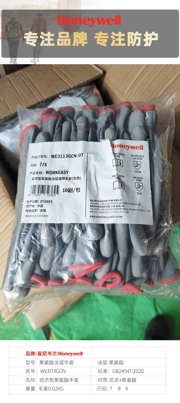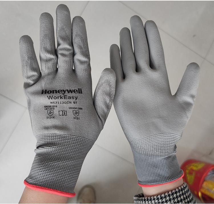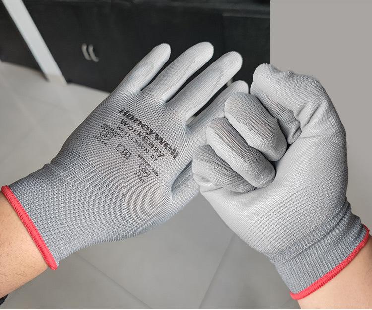 Guantes Honeywell WE3113GCN con revestimiento de poliuretano PU, transpirables, resistentes al desgaste y secos para trabajo electrónico.