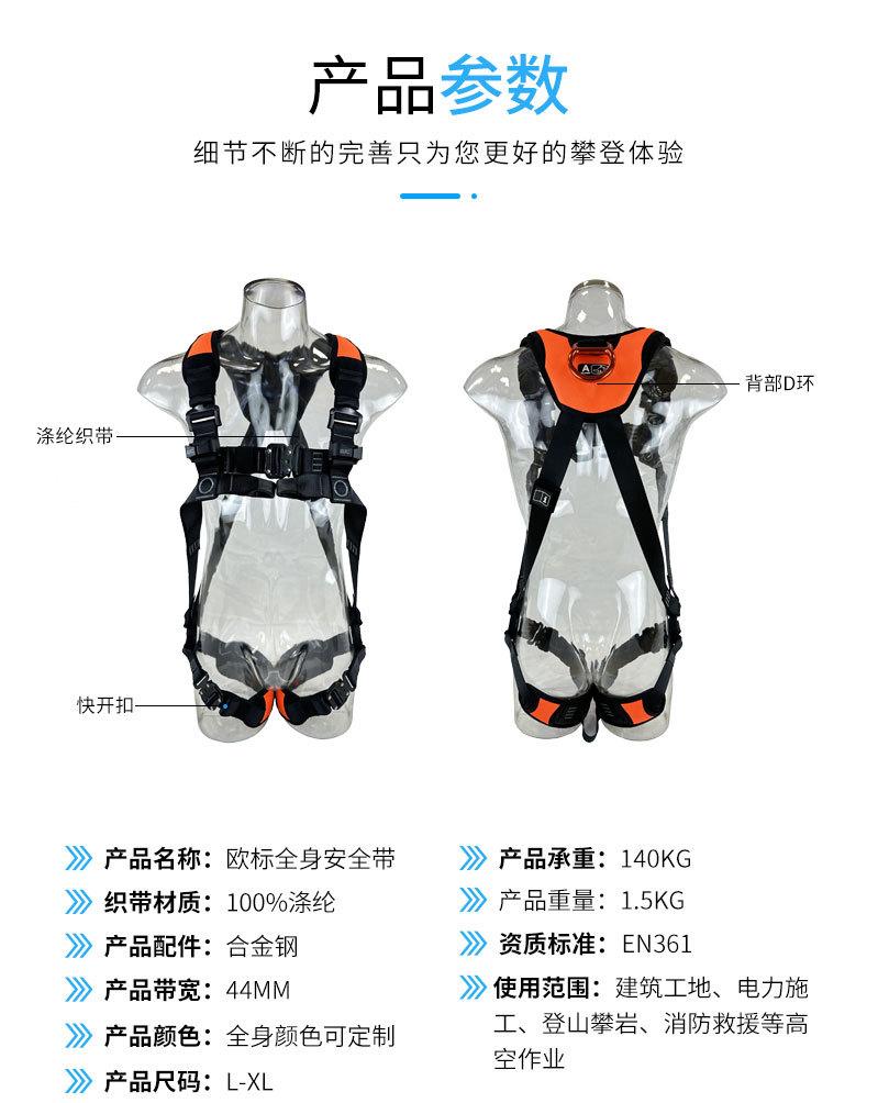 Fabricante Venta al por Mayor Cinturón de Seguridad de Cuerpo Completo Negro y Naranja para Trabajo en Altura Amortiguador Anticaídas Cinturón de Seguridad Portátil