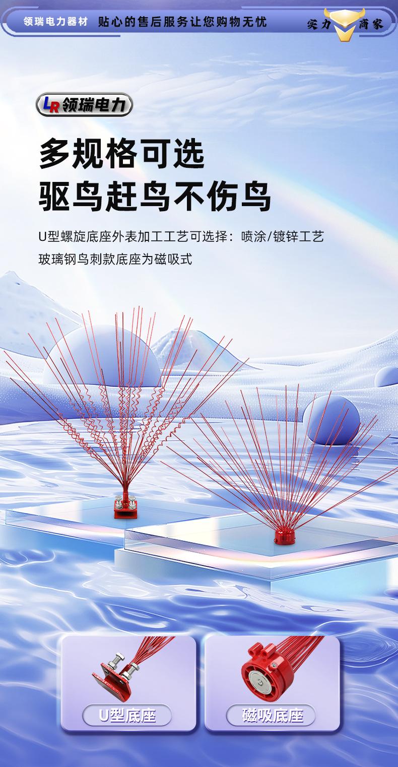 U-bolt spiral bird repellent, Fiberglass insulated magnetic bird repellent thorn 38 wires, Fiberglass insulate...