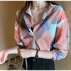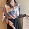 Camisa vintage estilo Hong Kong para mujer, primavera y otoño 2025, nuevo diseño, blusa holgada de manga larga con cuello alto y adelgazante.