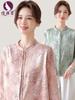 Nueva Madre de estilo chino Verano 2025 Nueva Camisa pequeña de estilo nacional de manga media para mujeres de mediana edad y mayores Camisa de gasa de moda para mujer