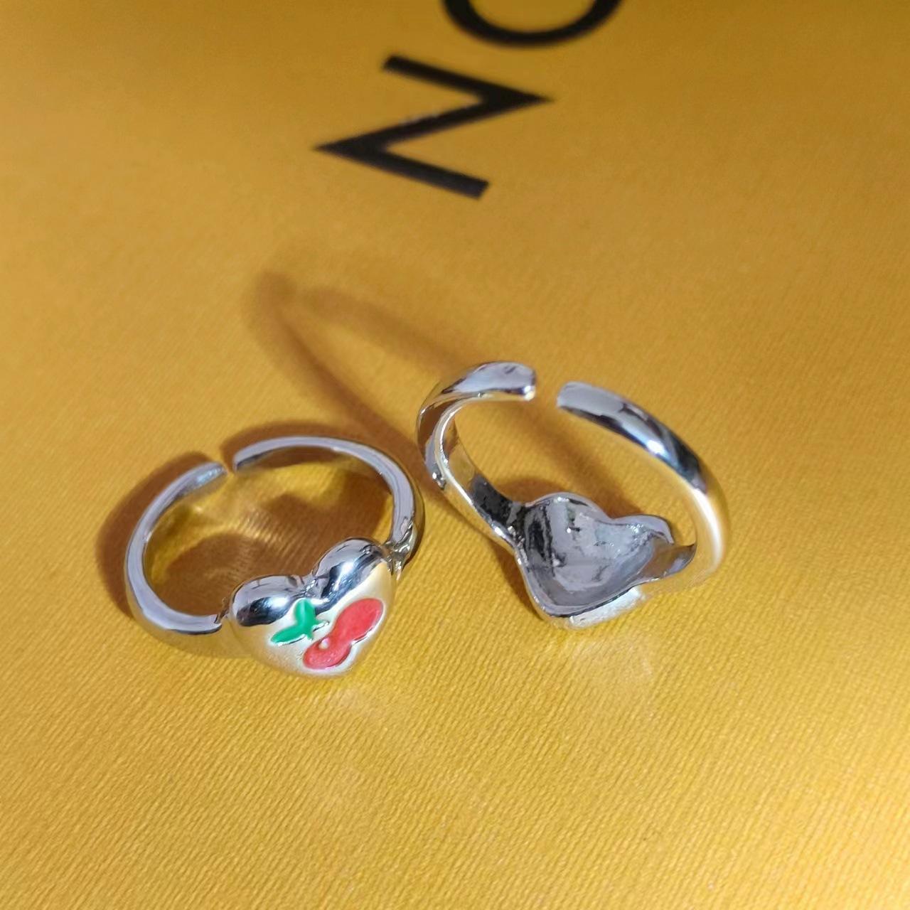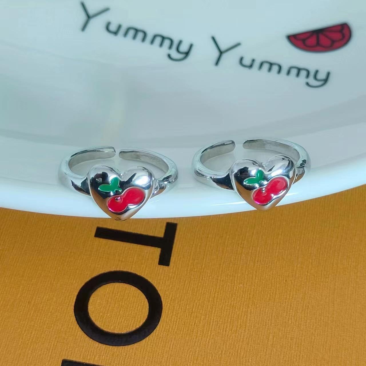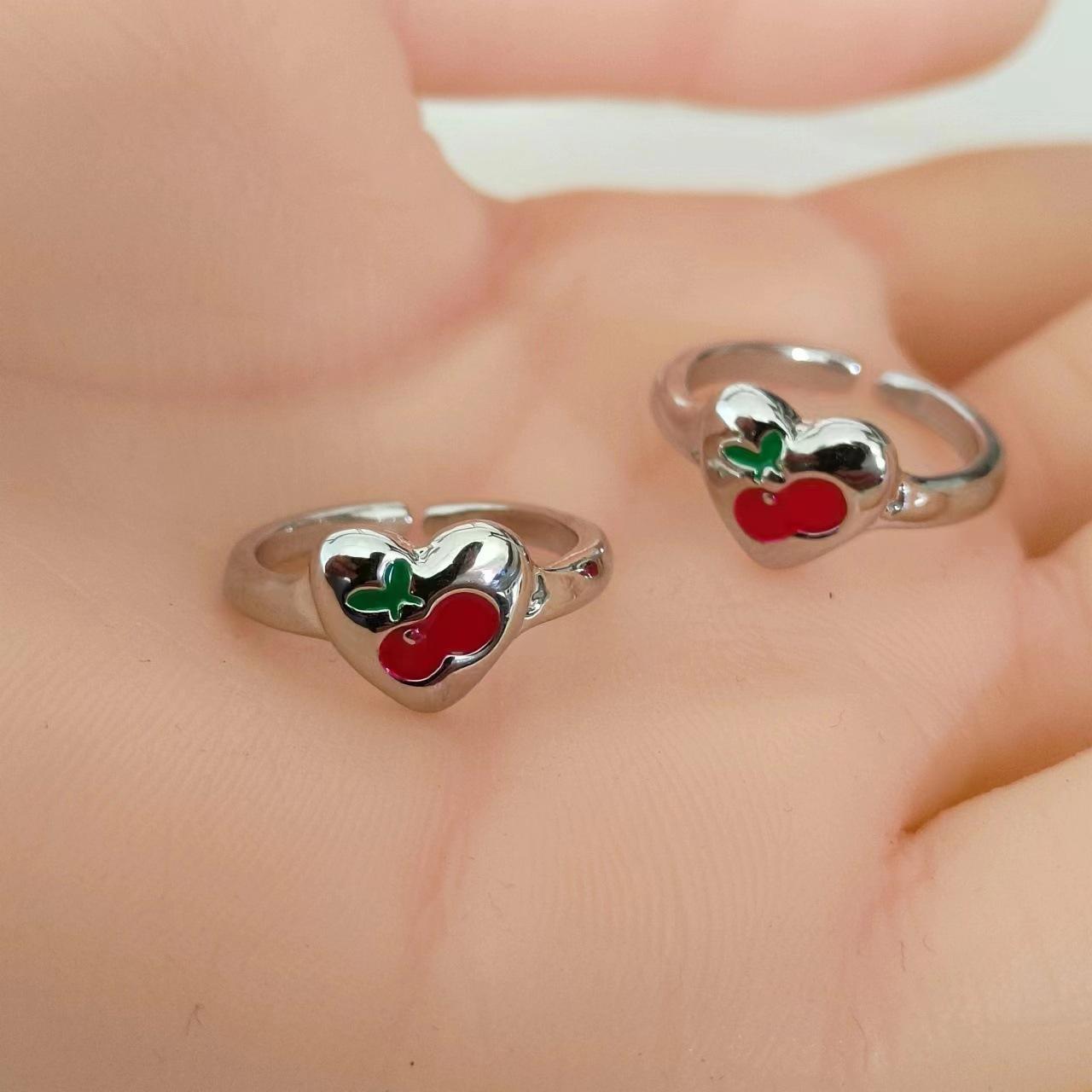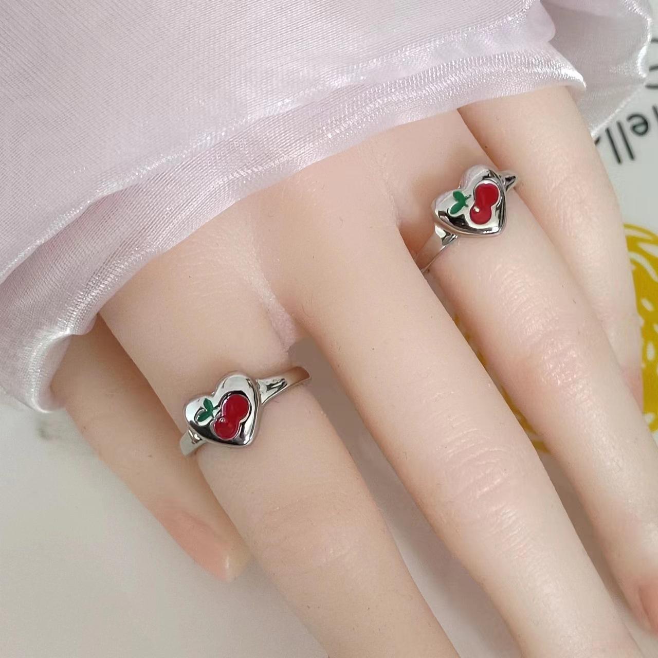 Precioso anillo de cereza para mujer, sencillo y elegante, estilo coreano, anillo ajustable abierto en forma de corazón para estudiantes, pulsera nueva de verano