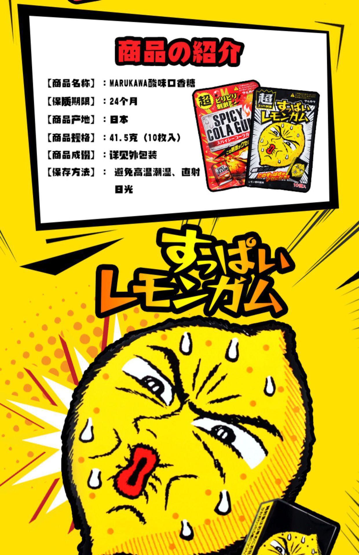 Snacks Importados Japoneses Marukawa Sabor Limón Súper Ácido/Sabor Cola Súper Picante Caramelos Masticables de Sabor Fuerte para Estimularse y Refrescarse