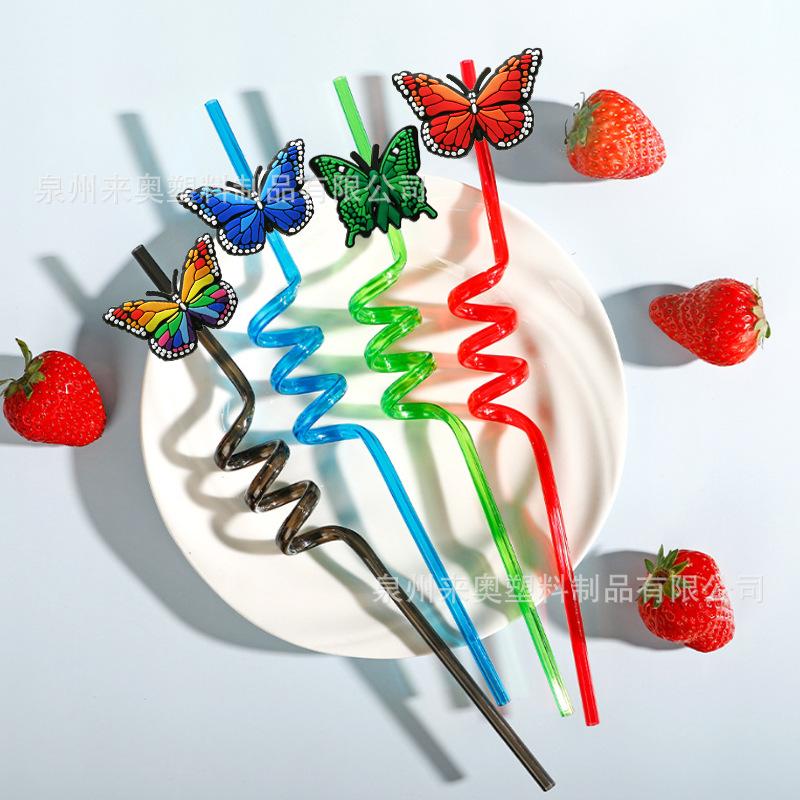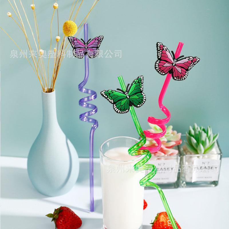 Accesorios de Tapa de Pajita de Mariposa de Dibujos Animados de Venta Caliente Transfronteriza en Stock, Lindas Cubiertas de Pajita de Goma Suave de PVC de Animales y Clips para Pajita