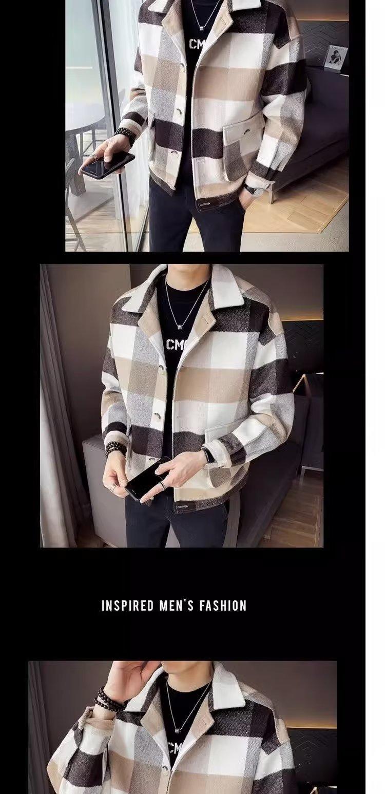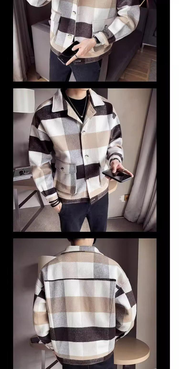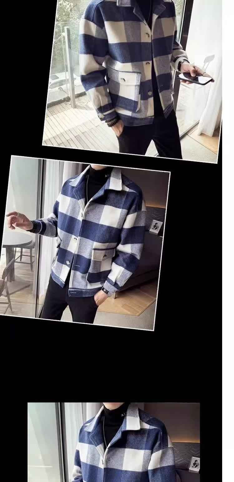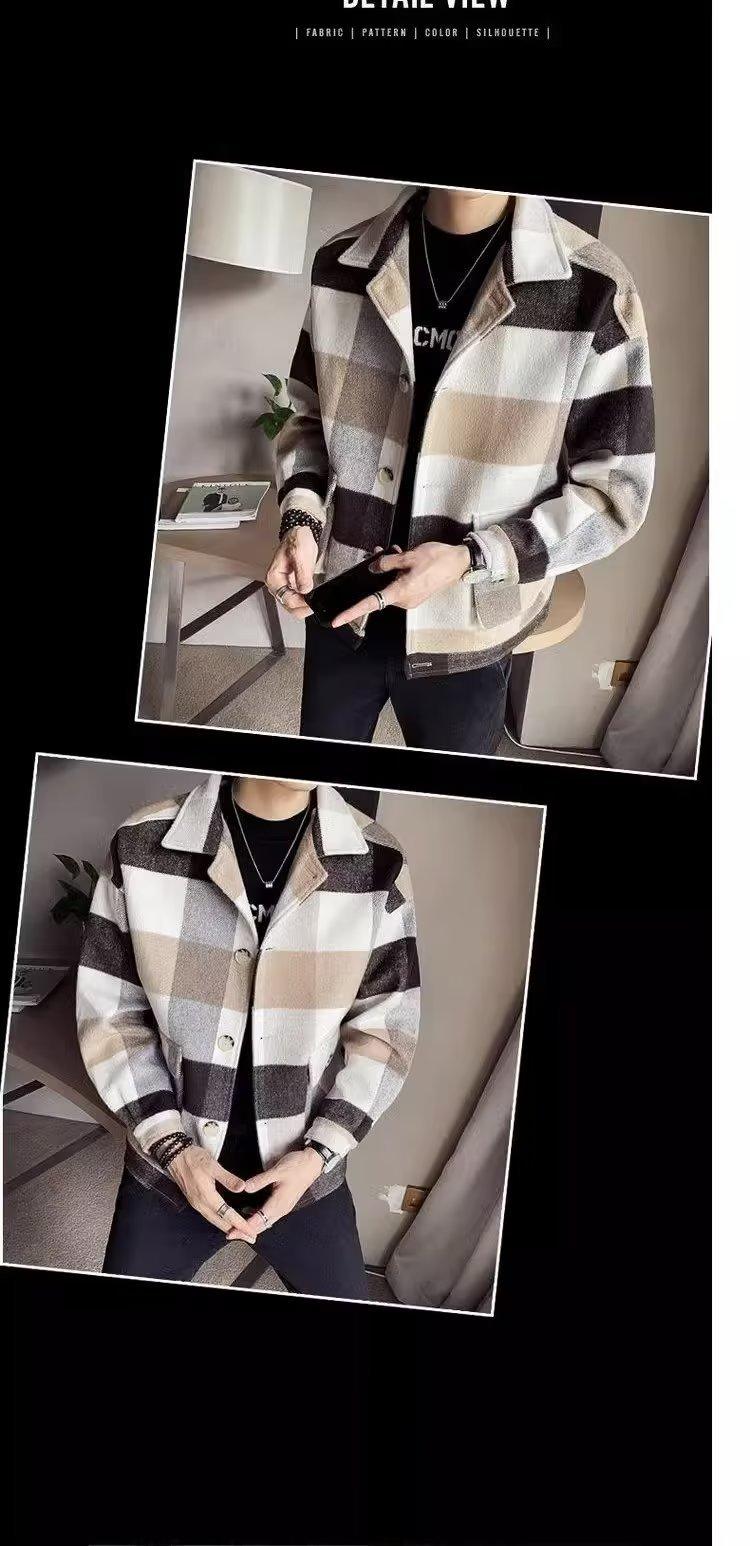 Sobretodo de lana a cuadros para hombre, otoño e invierno, chaqueta de lana para hombre, estilo coreano, moderno, guapo, casual, gabardina corta