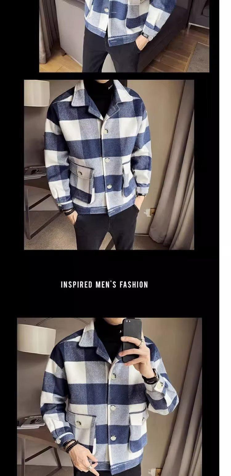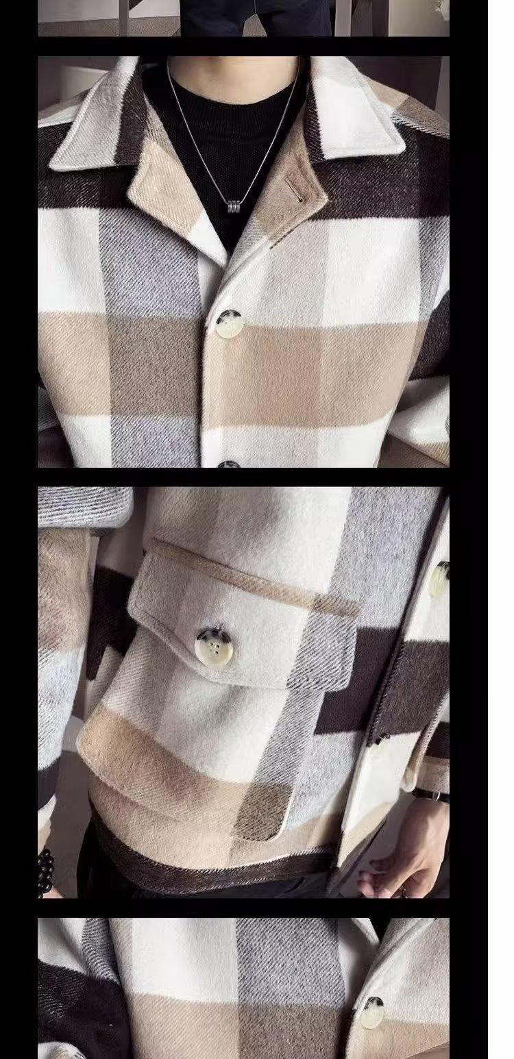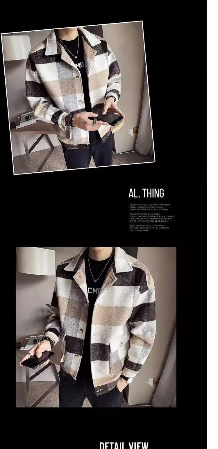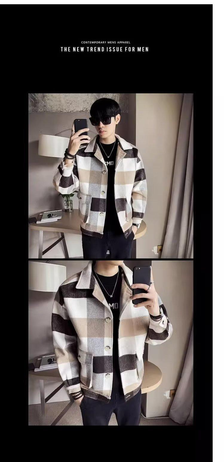 Sobretodo de lana a cuadros para hombre, otoño e invierno, chaqueta de lana para hombre, estilo coreano, moderno, guapo, casual, gabardina corta