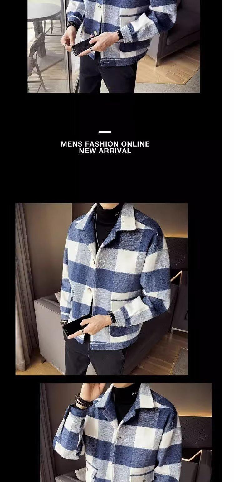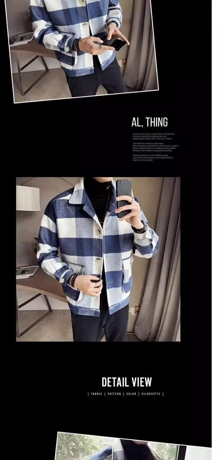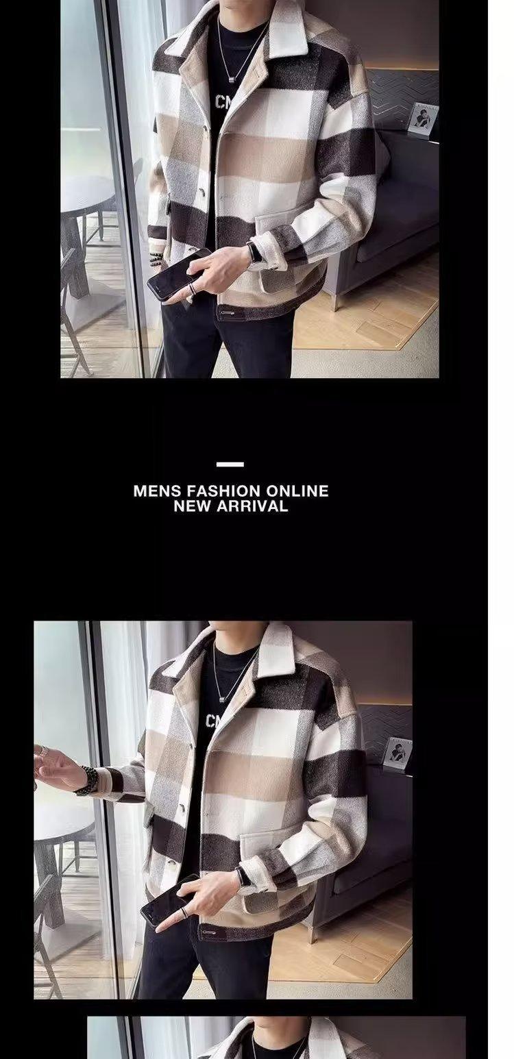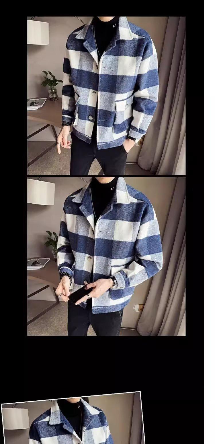Sobretodo de lana a cuadros para hombre, otoño e invierno, chaqueta de lana para hombre, estilo coreano, moderno, guapo, casual, gabardina corta