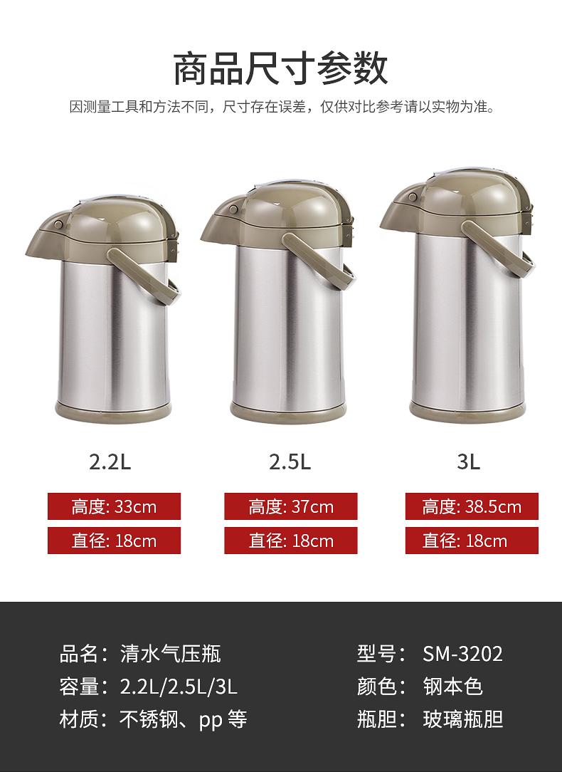 Termo de prensa xyt, termo de acero inoxidable para el hogar, termo con revestimiento de vidrio, termo de presión de aire para oficina