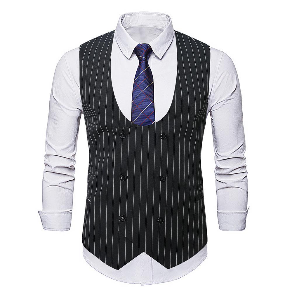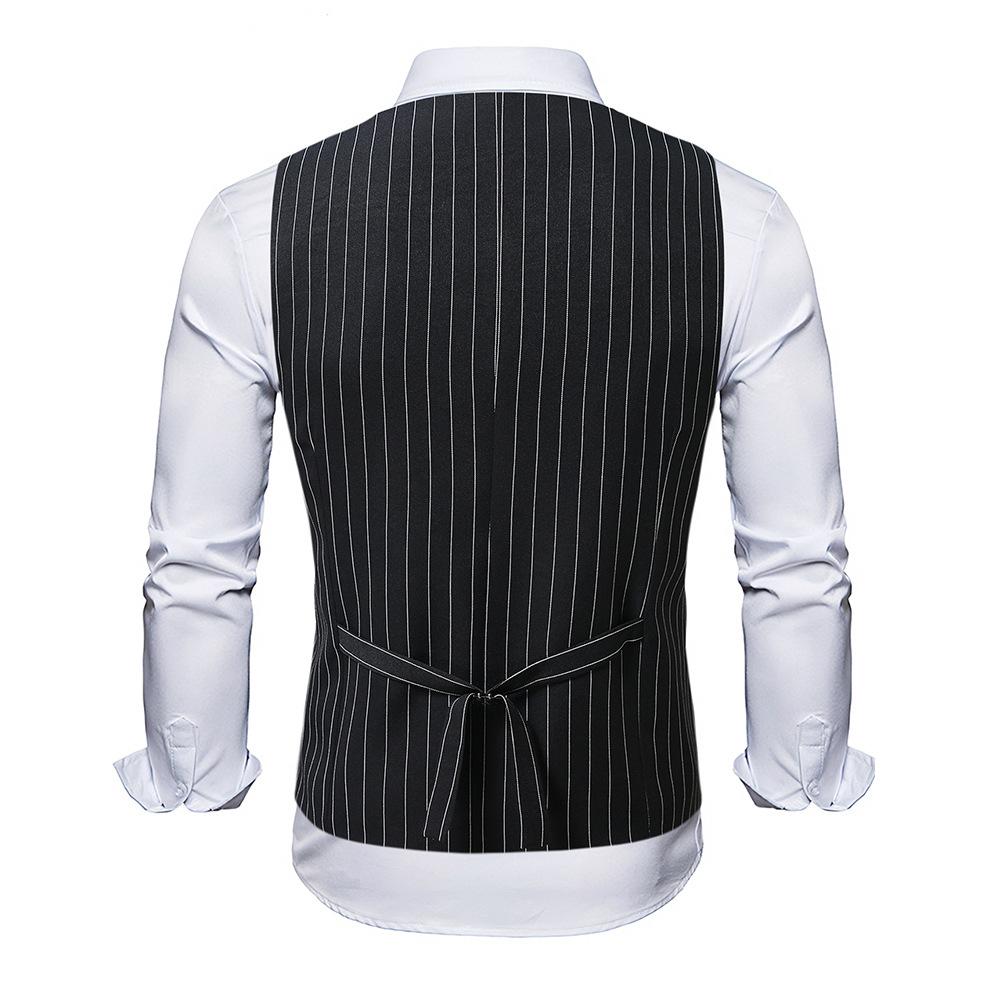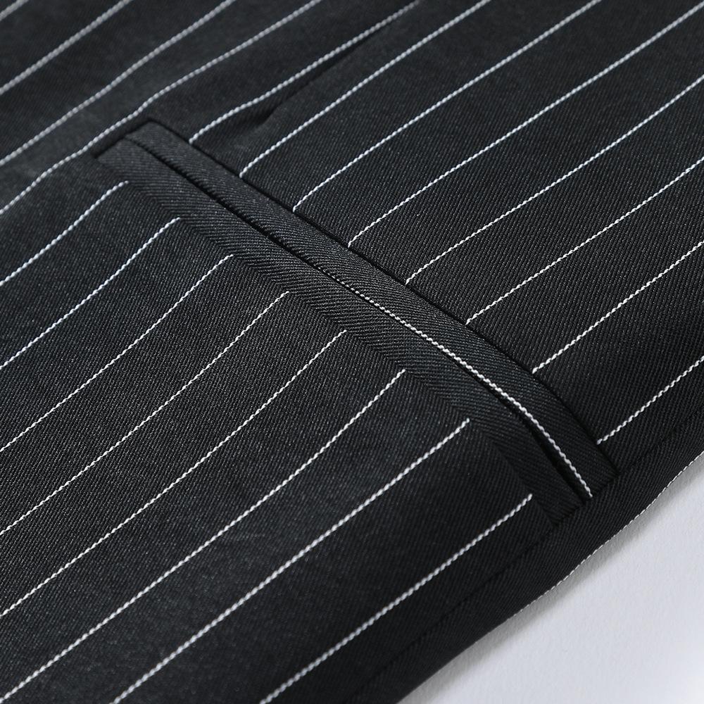 Traje Negro de Doble Botonadura para Hombre Estilo Caballero Británico Nuevo Primavera 2025 Chaleco Pequeño de Rayas Entallado Adelgazante para Hombre