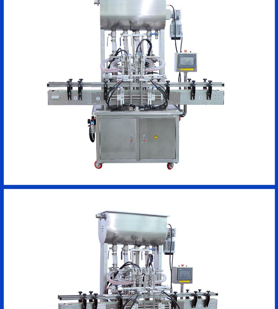 Máquina llenadora automática de frascos de cuatro cabezales personalizada para agua, salsa de chile, miel, aceite, gel de ducha y pasta.