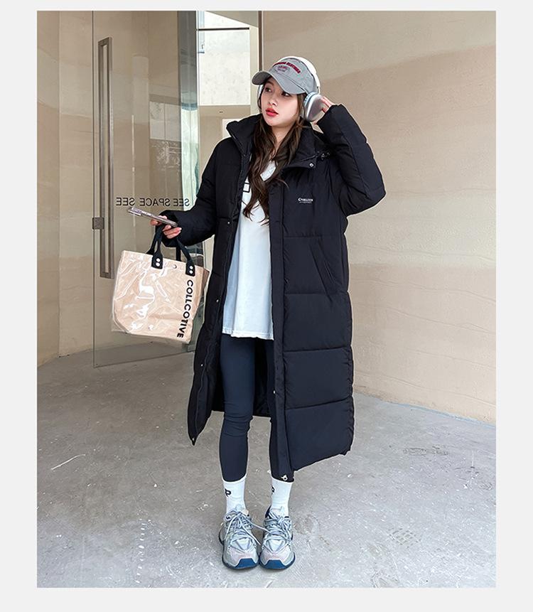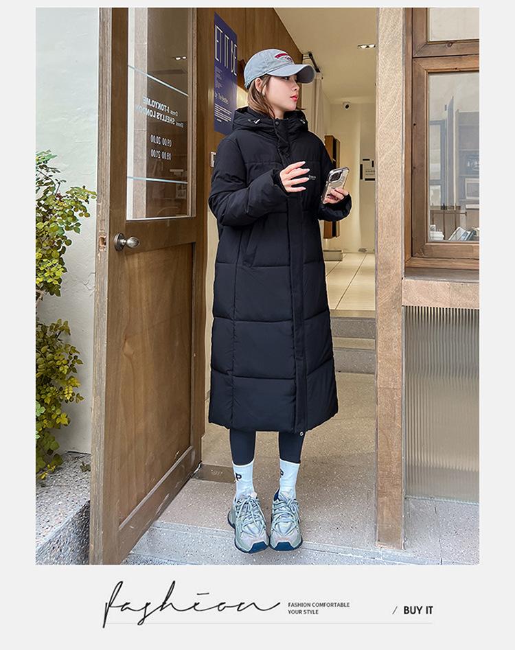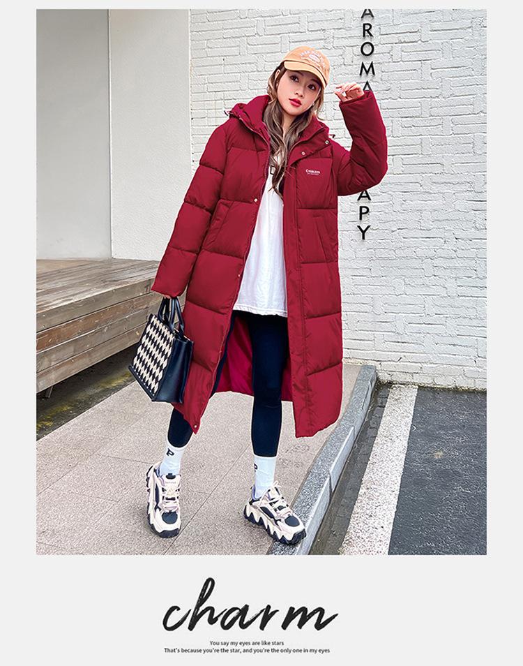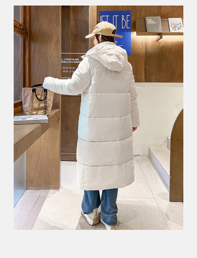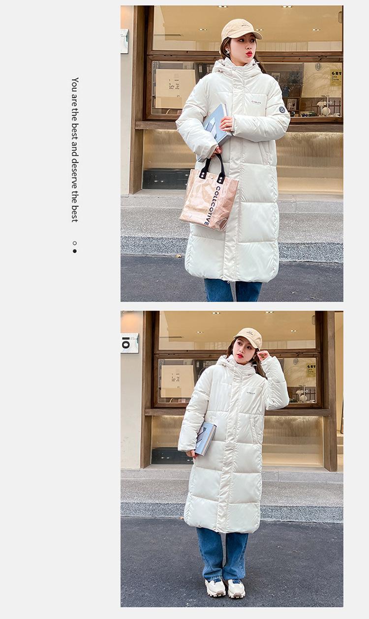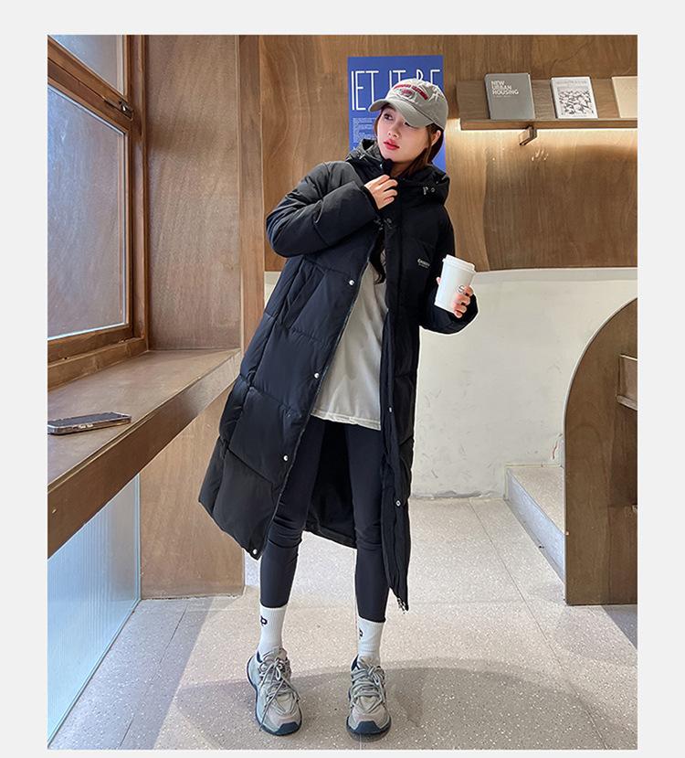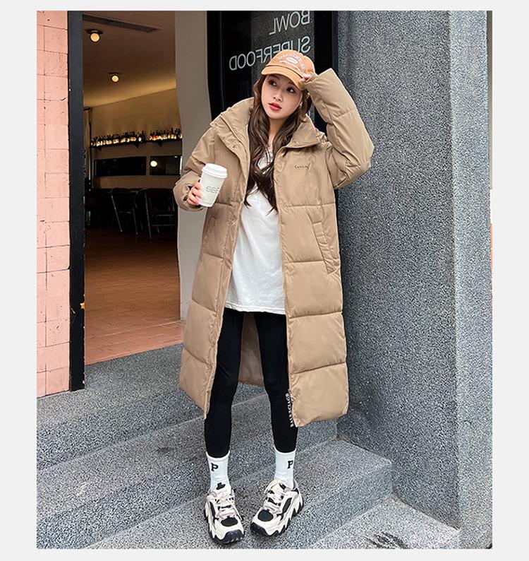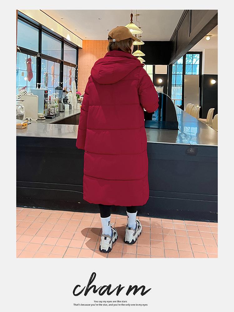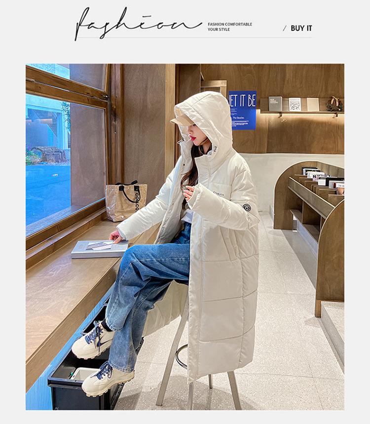 Abrigo largo estilo coreano por encima de la rodilla con capucha y relleno de algodón para mujer, invierno, nuevo, holgado, relleno de algodón, grueso y cálido, tipo abrigo de pan