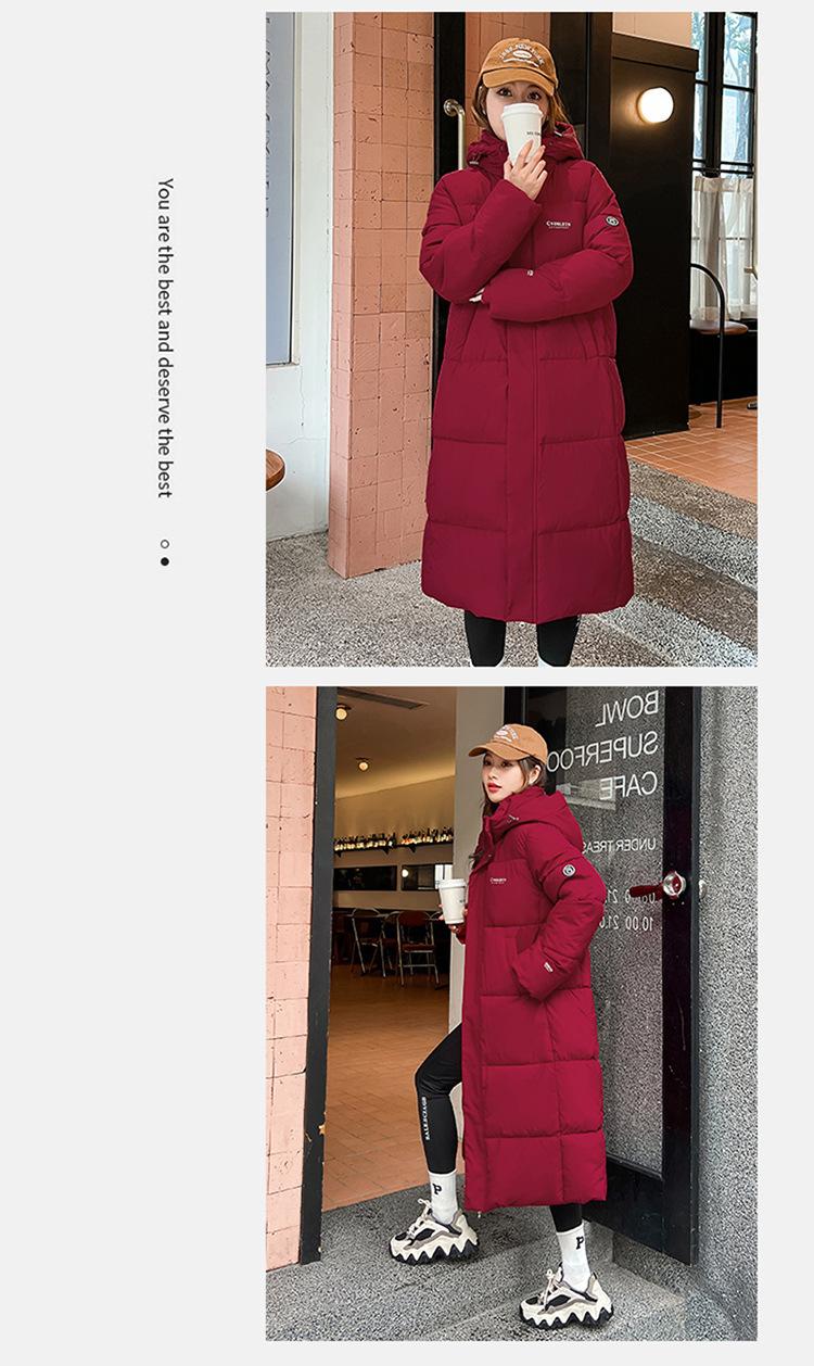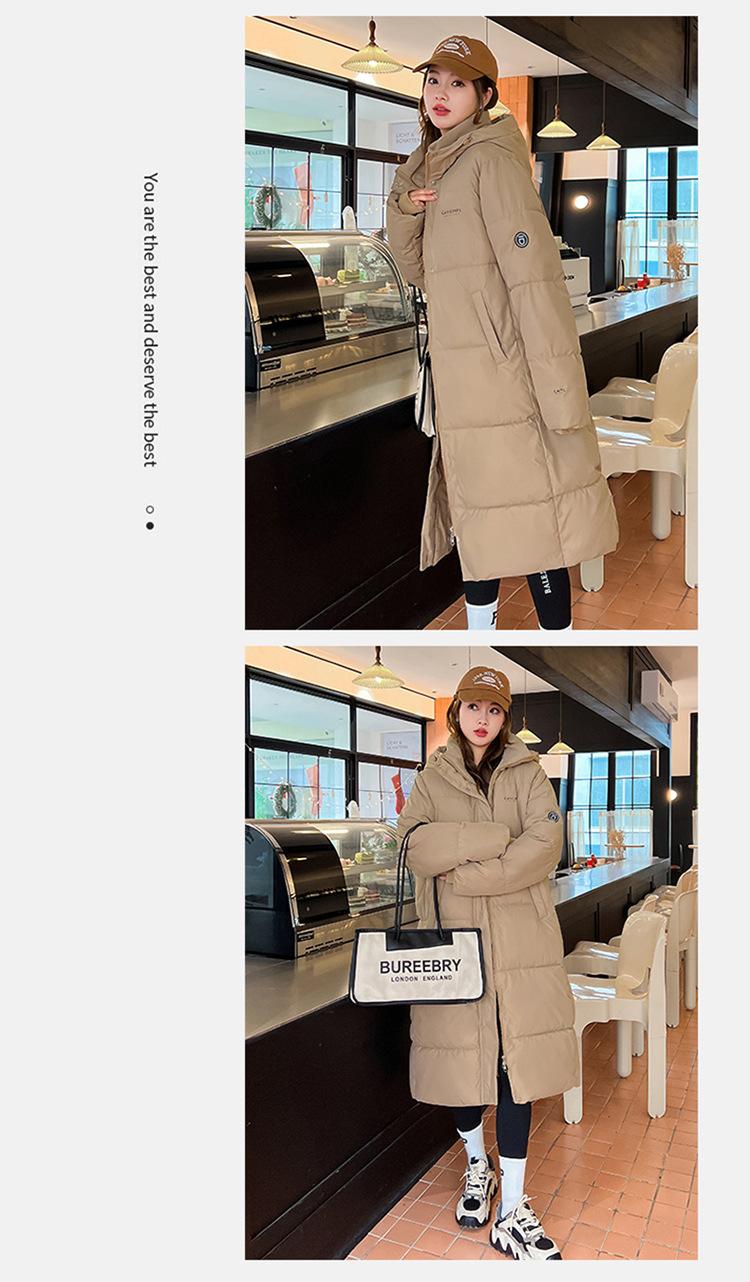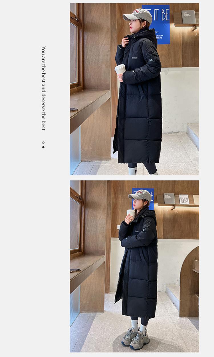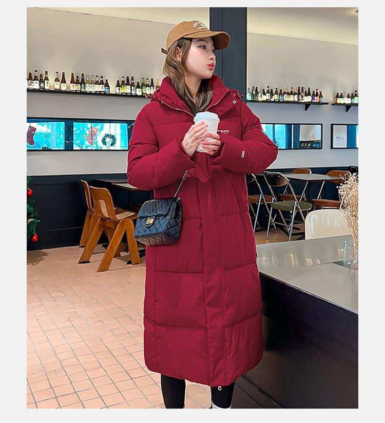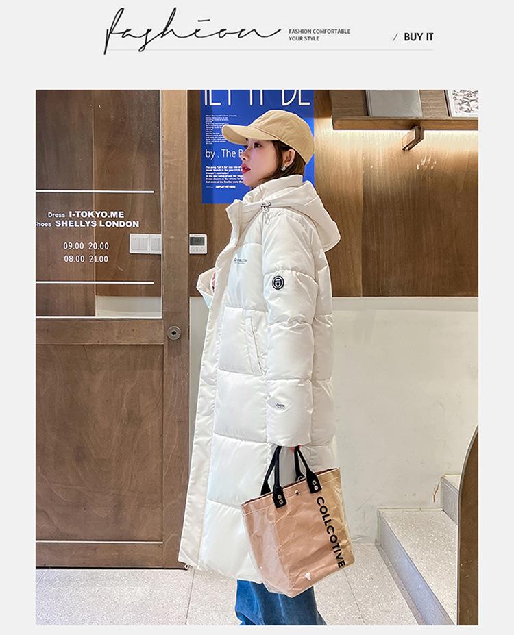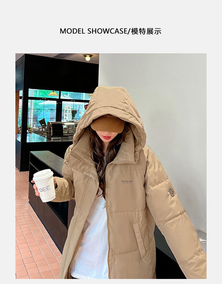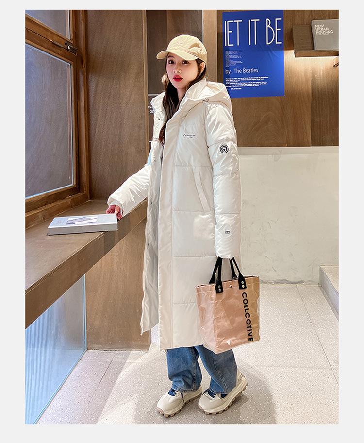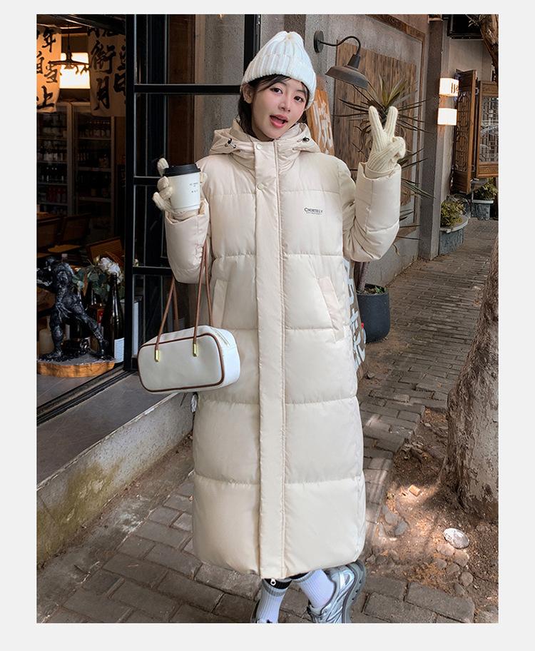 Abrigo largo estilo coreano por encima de la rodilla con capucha y relleno de algodón para mujer, invierno, nuevo, holgado, relleno de algodón, grueso y cálido, tipo abrigo de pan