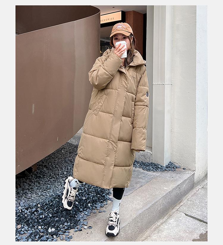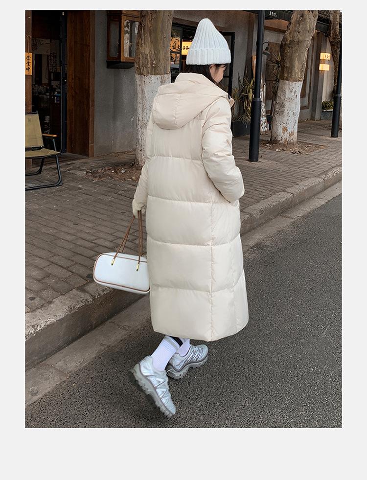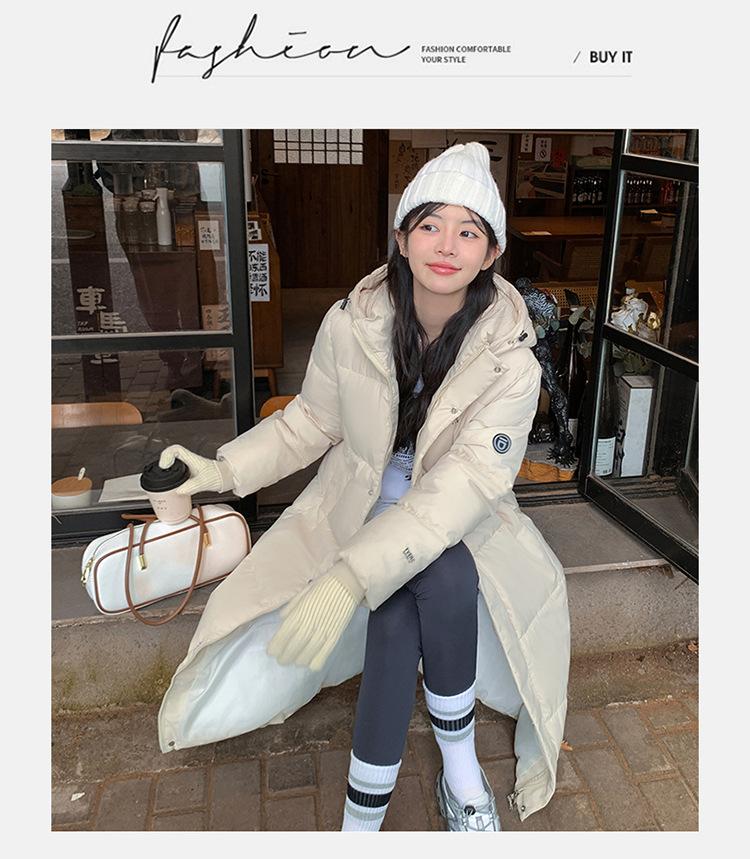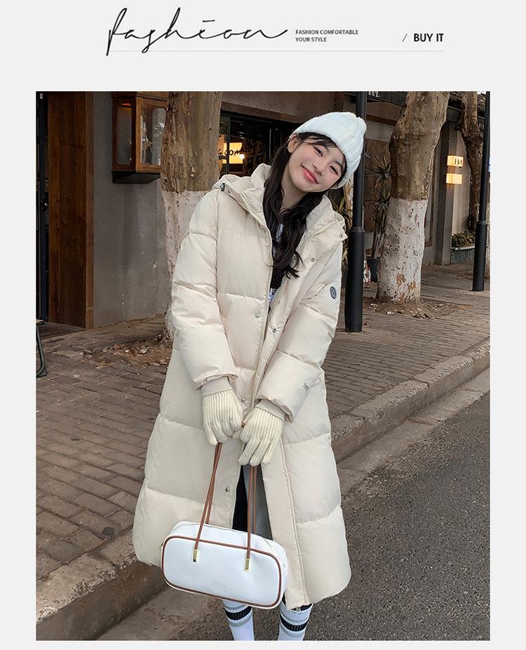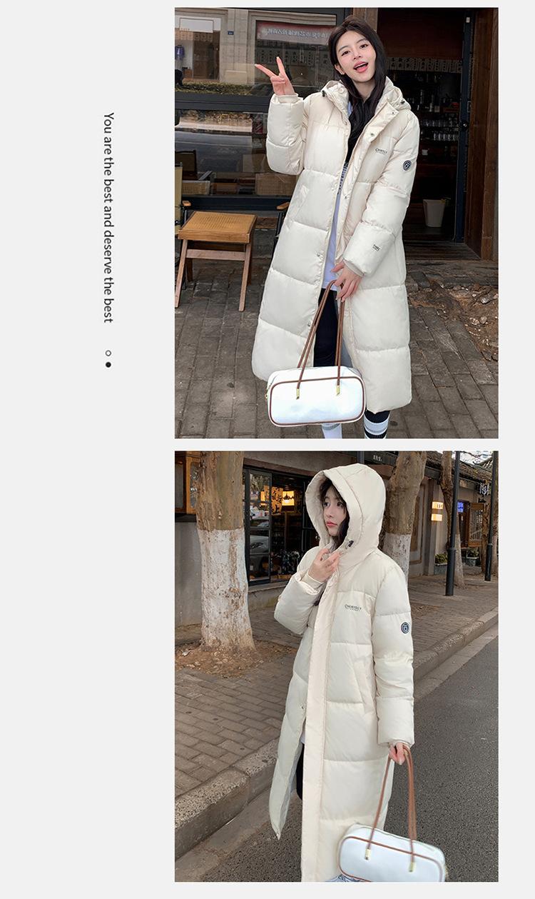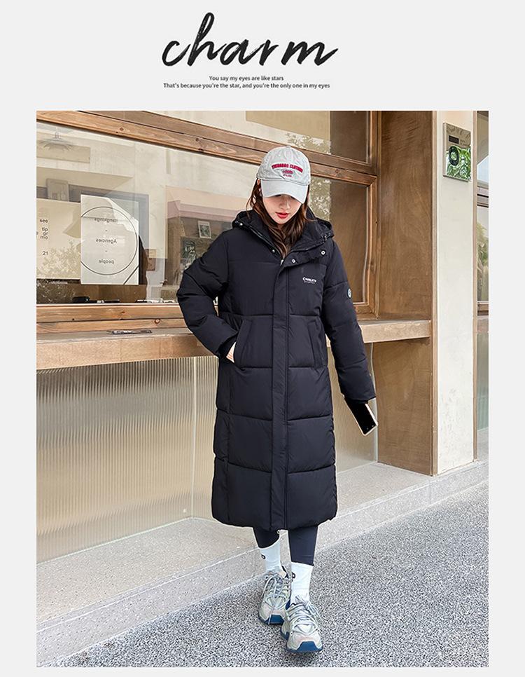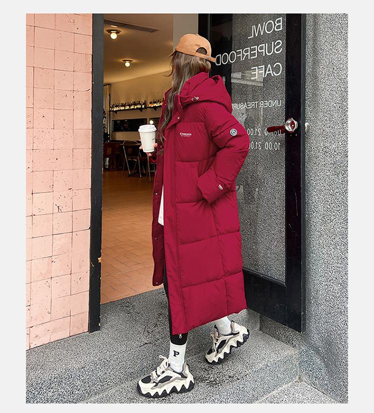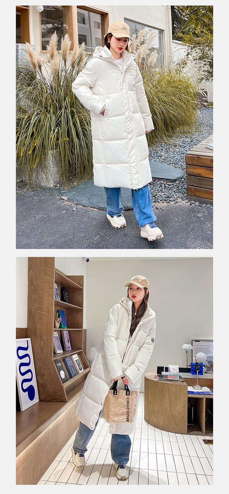 Abrigo largo estilo coreano por encima de la rodilla con capucha y relleno de algodón para mujer, invierno, nuevo, holgado, relleno de algodón, grueso y cálido, tipo abrigo de pan