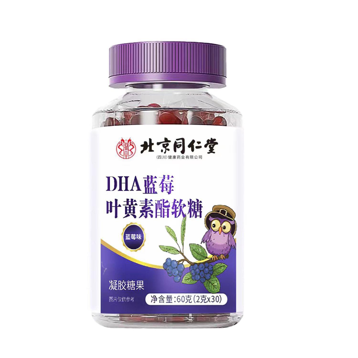 Caramelos gomosos de éster de luteína de arándano DHA de Beijing Tongrentang, botella de 60 g, fabricante de origen que apoya a una generación