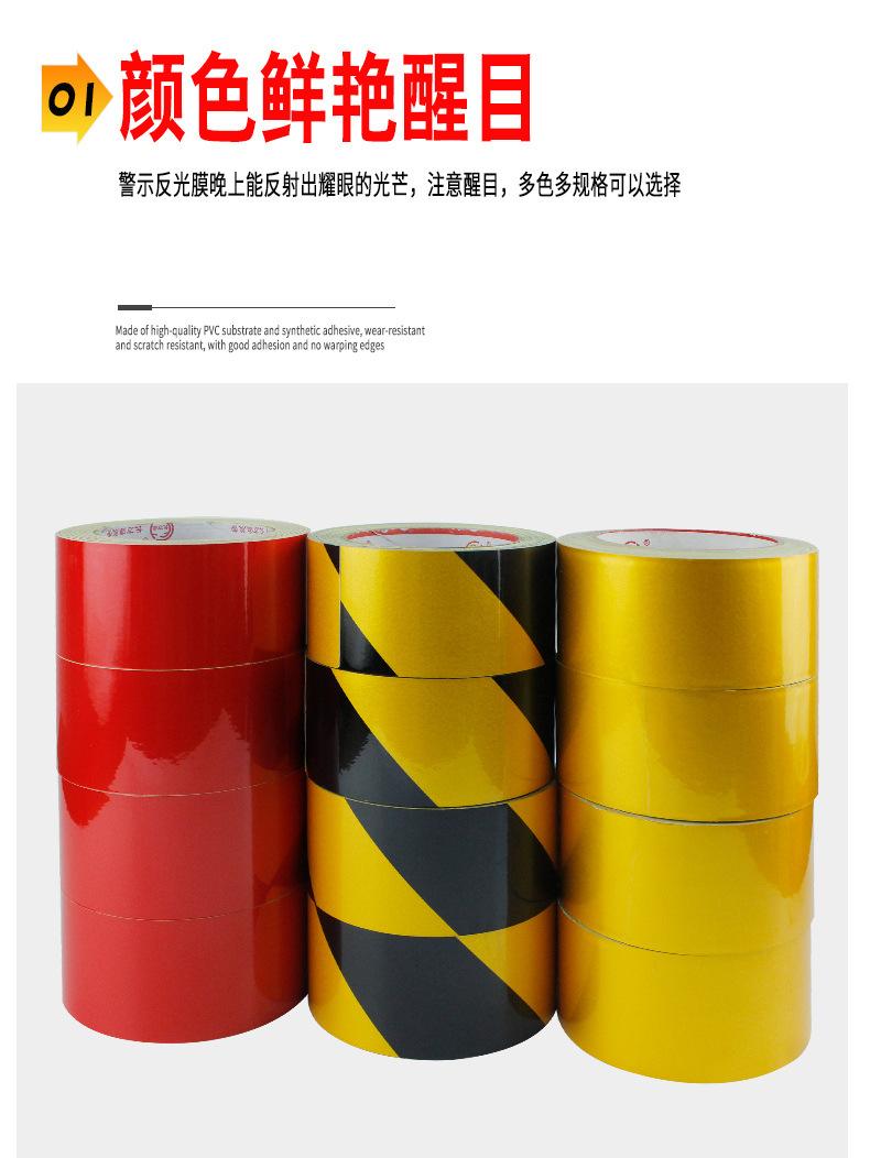 Cinta de advertencia de película reflectante negra, amarilla, roja y verde, parche cebra, cinta impermeable, cinta reflectante PET, salida de fábrica