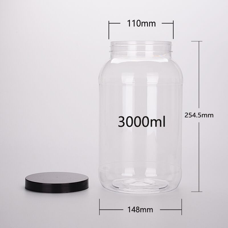 3.8L5L10L Cubeta de Polvo de Proteína de Suero de Leche para Comida de Mascota Nutrición Deportiva Polvo de Proteína Cubeta para Snacks Transparente Negra