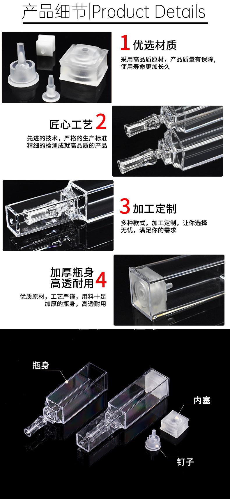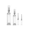 Botella de plástico cuadrada con cierre a presión de 5 ml, botella de esencia para mascarilla de 2 ml para mantener la frescura, botella con jeringa que se puede romper, botella con cierre a presión de 10 ml.
