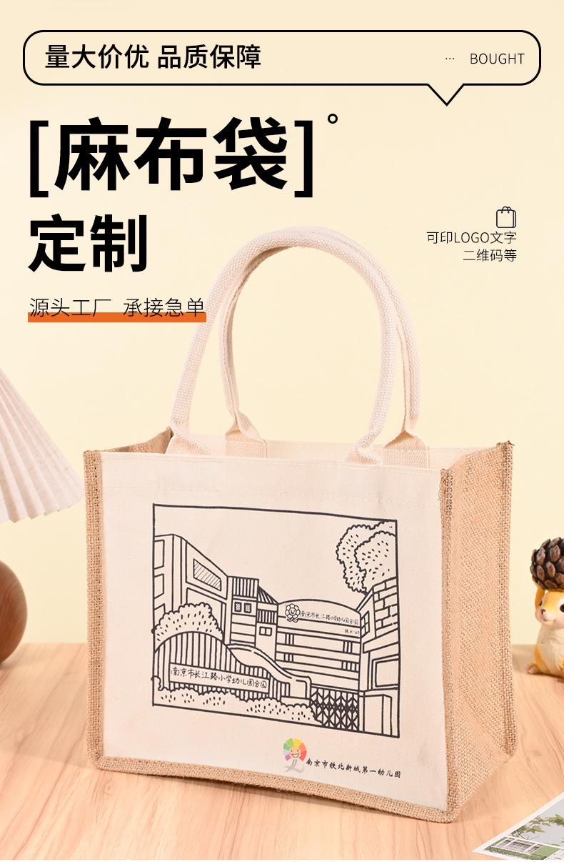 Compra Saco logo personalizado patrón de moda ecológico yute lino bento compras bolsa de regalo bolsa de lona bolsa tote al por mayor en Joom.pro