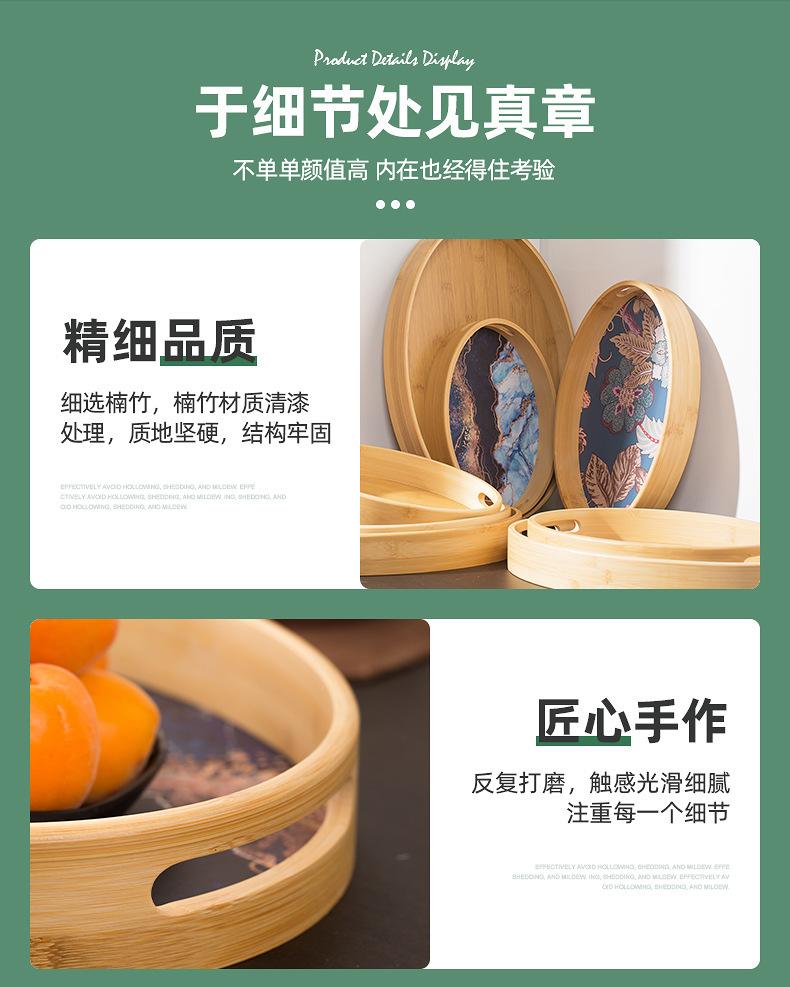 Bandeja de madera de bambú de alto valor de color, cuadrada, de estilo simple, moderna, redonda, japonesa, para el hogar, bandeja de té, bandeja de almacenamiento redonda