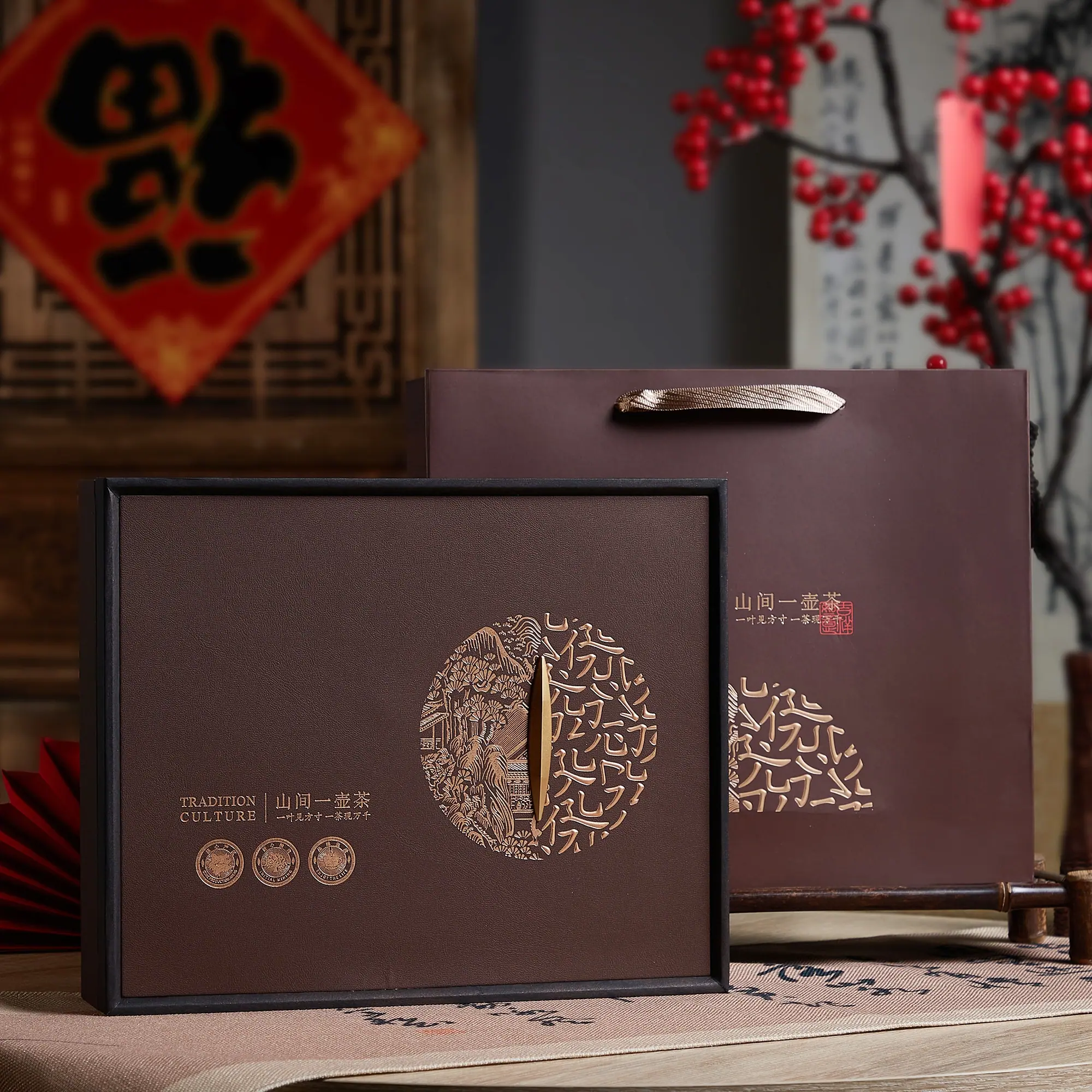 Caja de Regalo para Pastel Doble de 200g con Ventana de Madera Caja de Empaque para Pastel de Té de 357g Caja de Empaque para Té Blanco Fuding Té Pu 'er