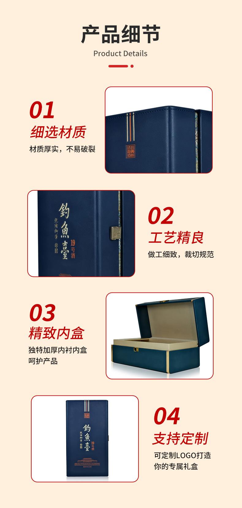 Caja de vino con forma personalizada de fábrica, embalaje de vino blanco, lote pequeño, caja de regalo de vino tinto, caja de regalo de cuero de alta calidad con doble apertura para vino blanco