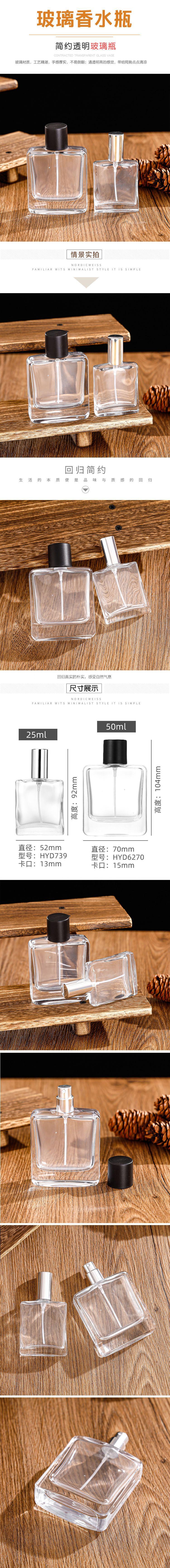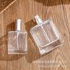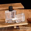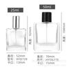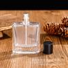 Botella de perfume al por mayor, de 25 ml y 50 ml, con hombro plano, cuadrada, de vidrio transparente, con boquilla de bayoneta y pulverizador.
