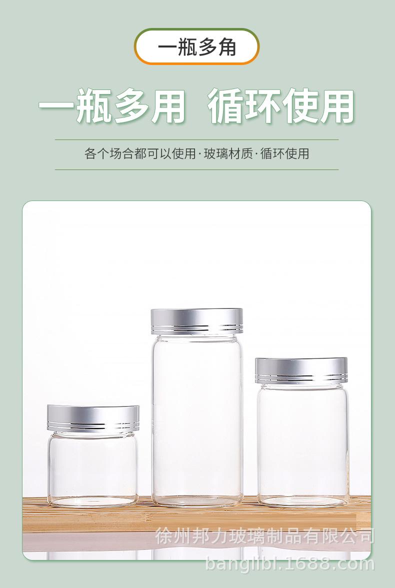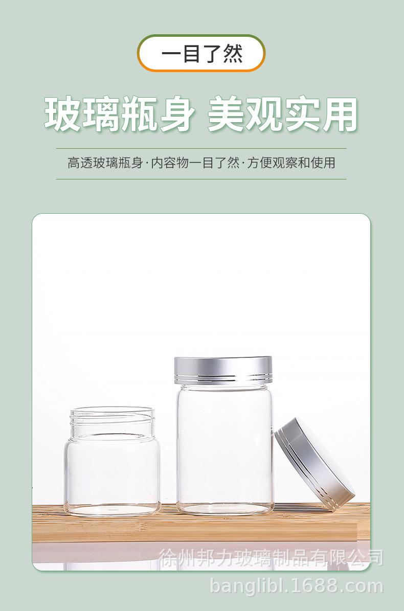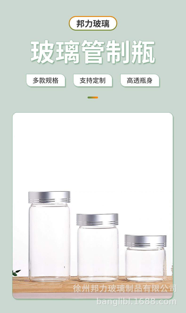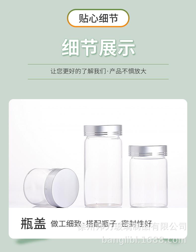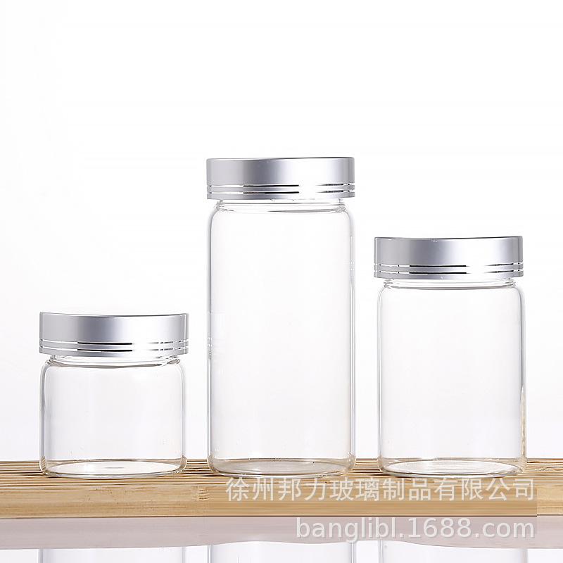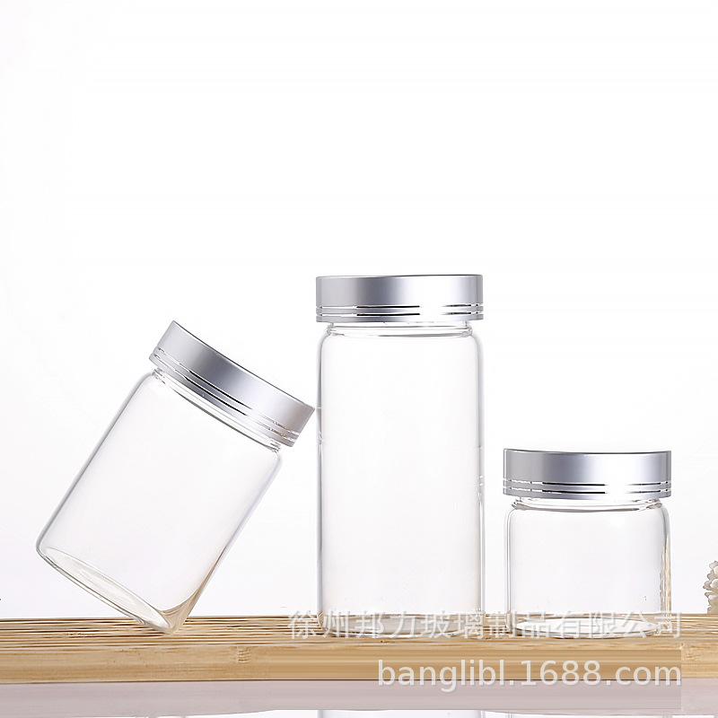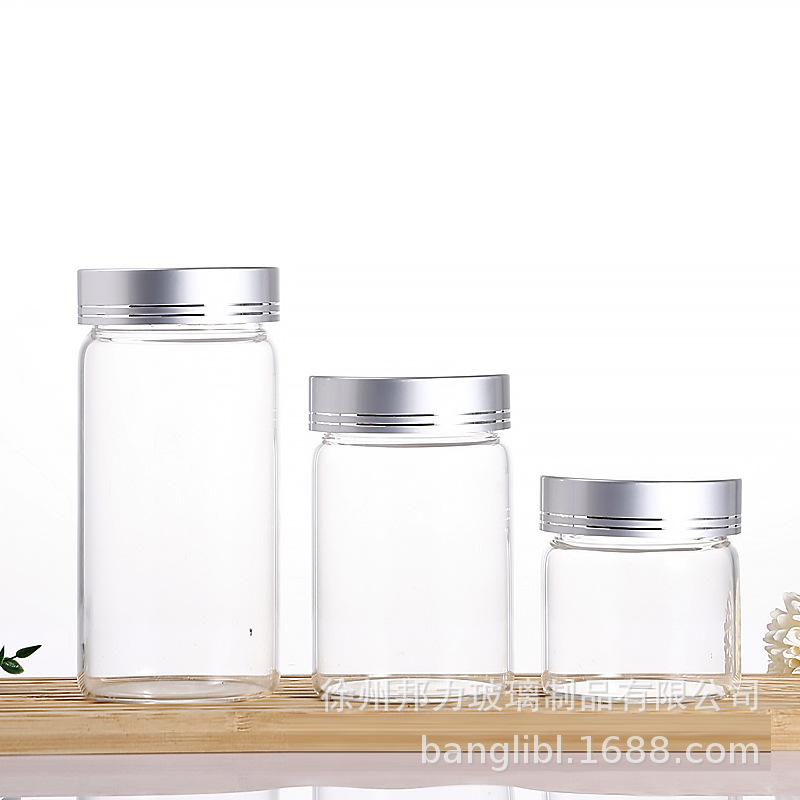 Botella con tapa de plata oxidada, diámetro de 78 mm, tubo de rosca, botella de borosilicato alto, para envasado de alimentos, té perfumado.