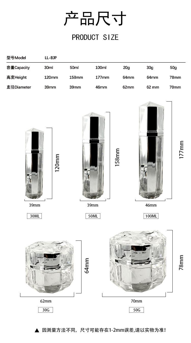 Botella Acrílica Azul de Alta Gama 30/50/100ml Loción 30/50g Crema Botella Embalaje Cosmético