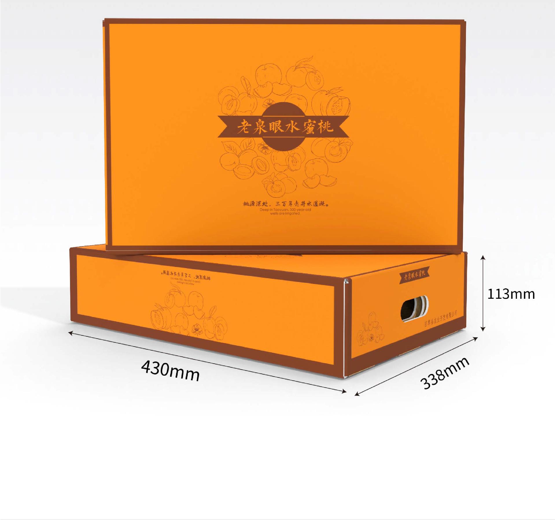 Caja de regalo de fruta personalizada con cubierta de papel corrugado universal, embalaje de producto dorado, 2,50 kg-5,00 kg, caja de regalo de melocotón