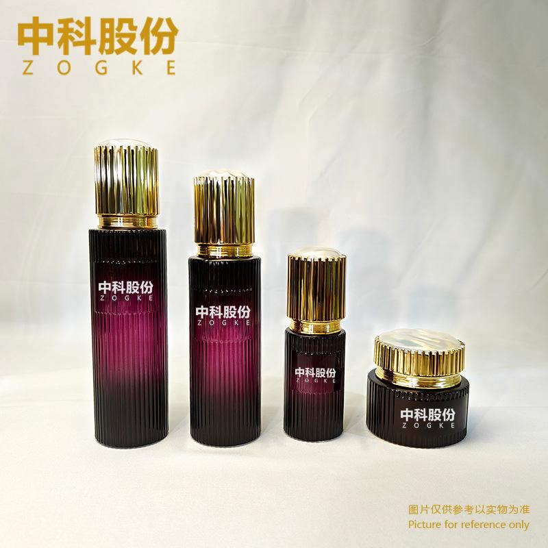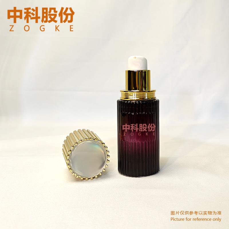 30ml; purple-black gradient + vertical stripe gold cap; glass