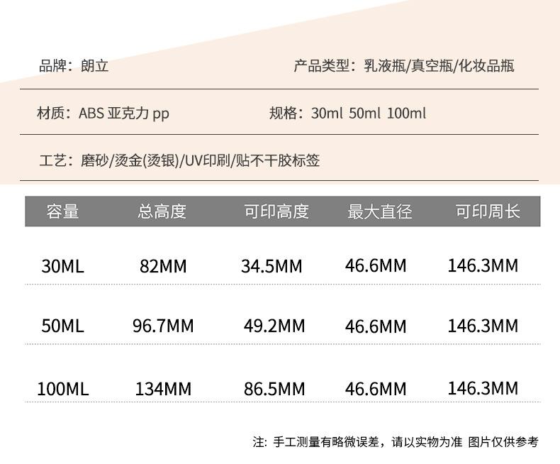 Botella de Loción al Vacío con Tapa Flip-Top, 30ml, 50ml, 100ml, Botella Dispensadora al Vacío Tipo Presión, Botella para Esencia, Botella al Vacío de PP