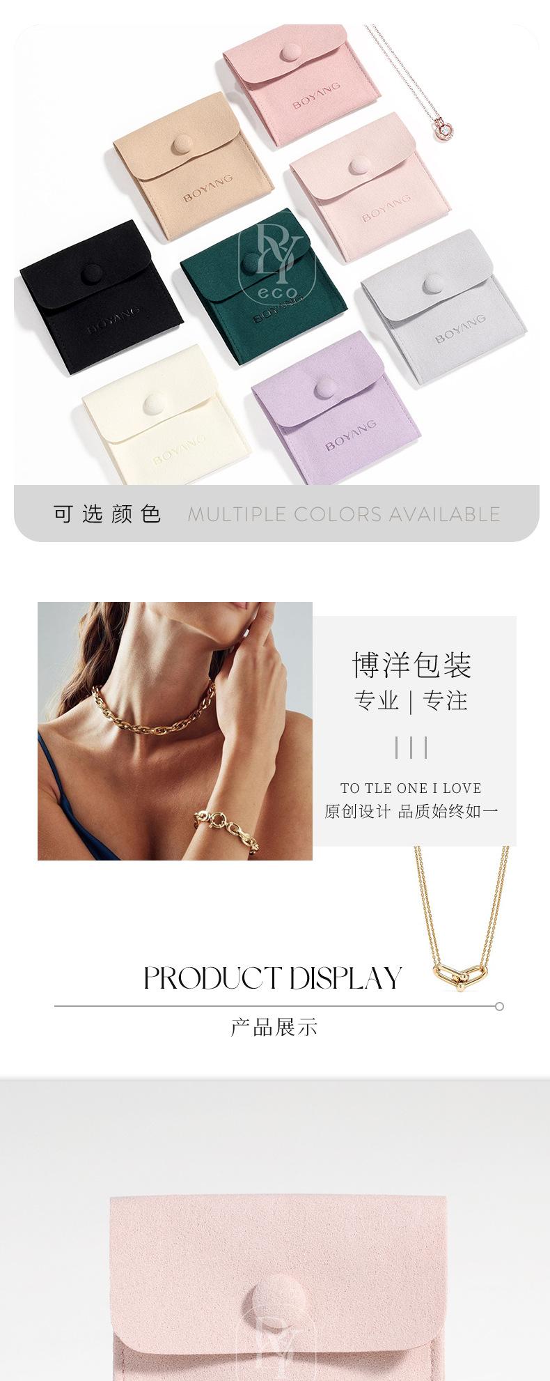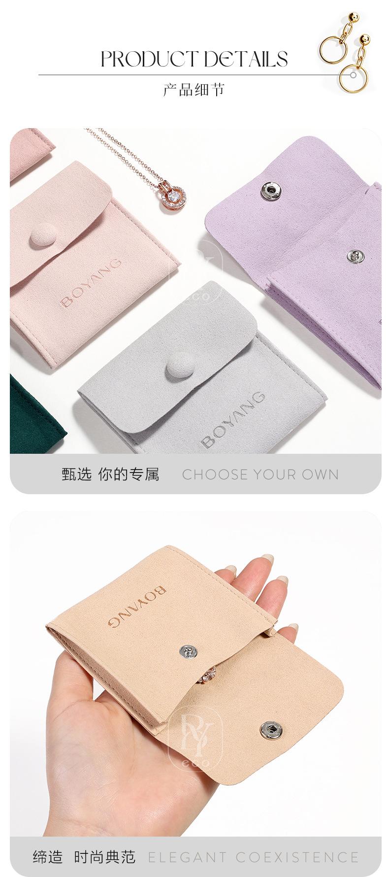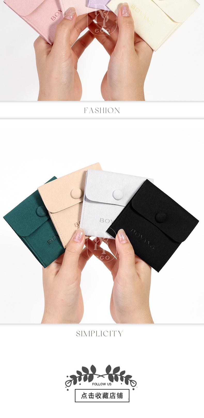 Bolsa de microfibra para guardar joyas, con botón a presión, para anillos, pendientes y collares, 8 colores opcionales.