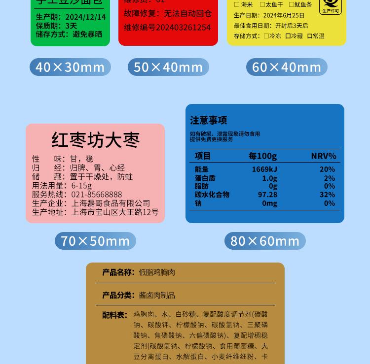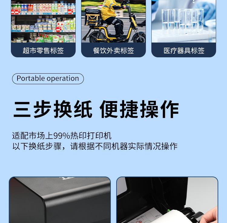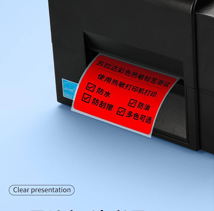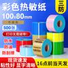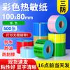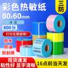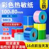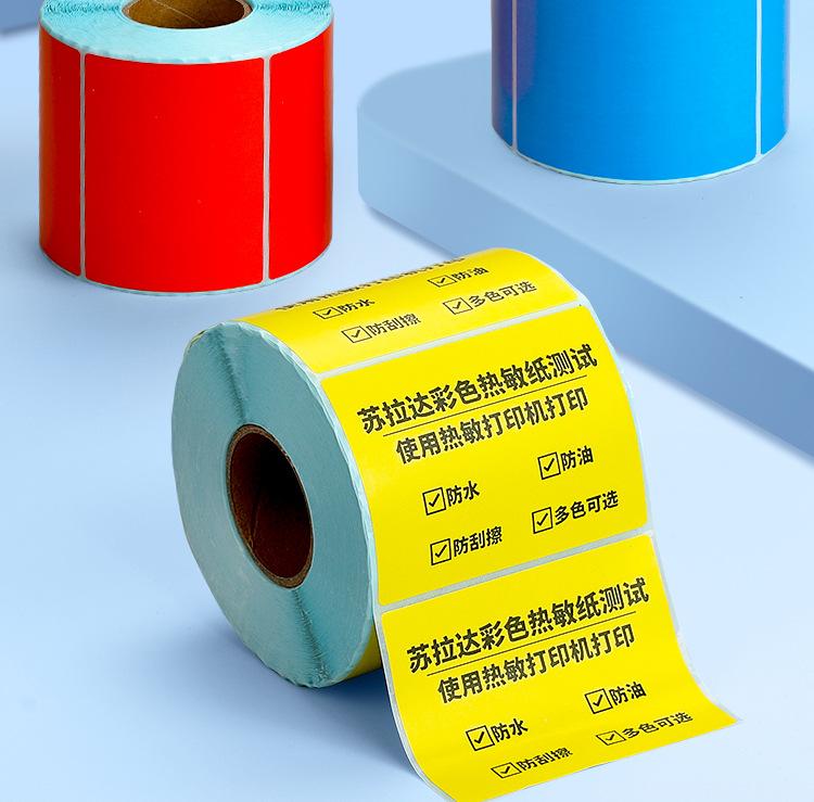 Impresora de código de barras con papel de etiquetas térmicas a color, etiqueta adhesiva de tres pruebas, precio de supermercado, precio de alimentos, firma