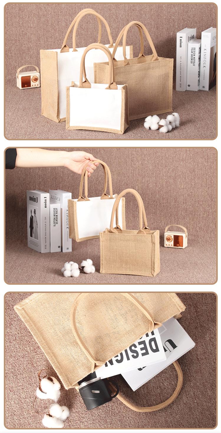 Compra Bolsa de lino con logotipo, bolso de mano de algodón y lino, ecológica, bolsa de compras de lino, yute, impermeable, lonchera, bolsa de lona al por mayor en Joom.pro