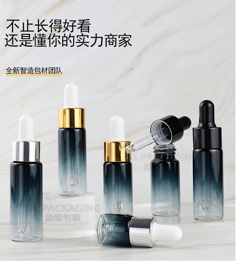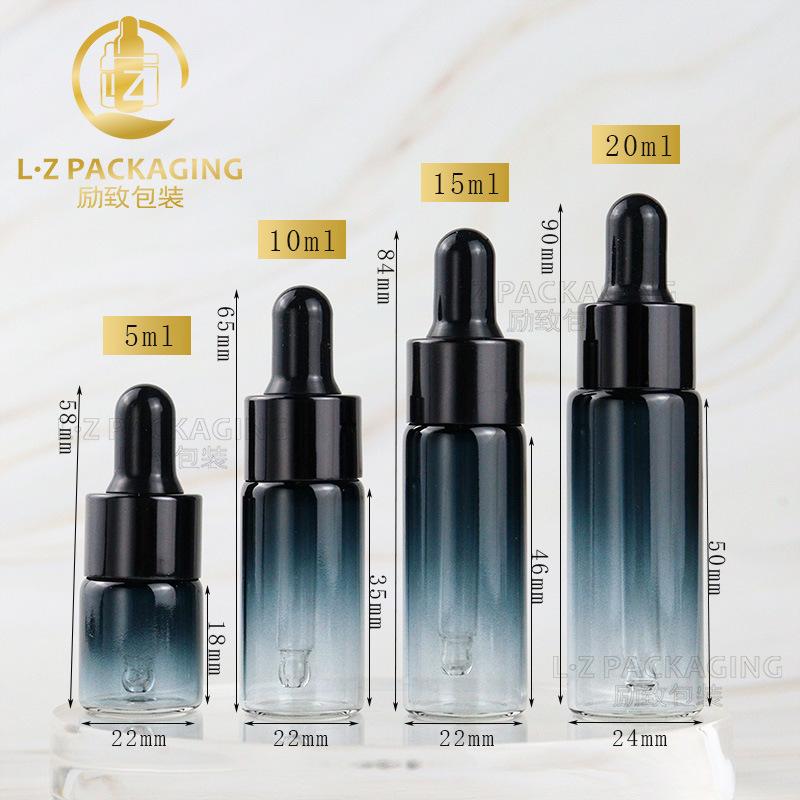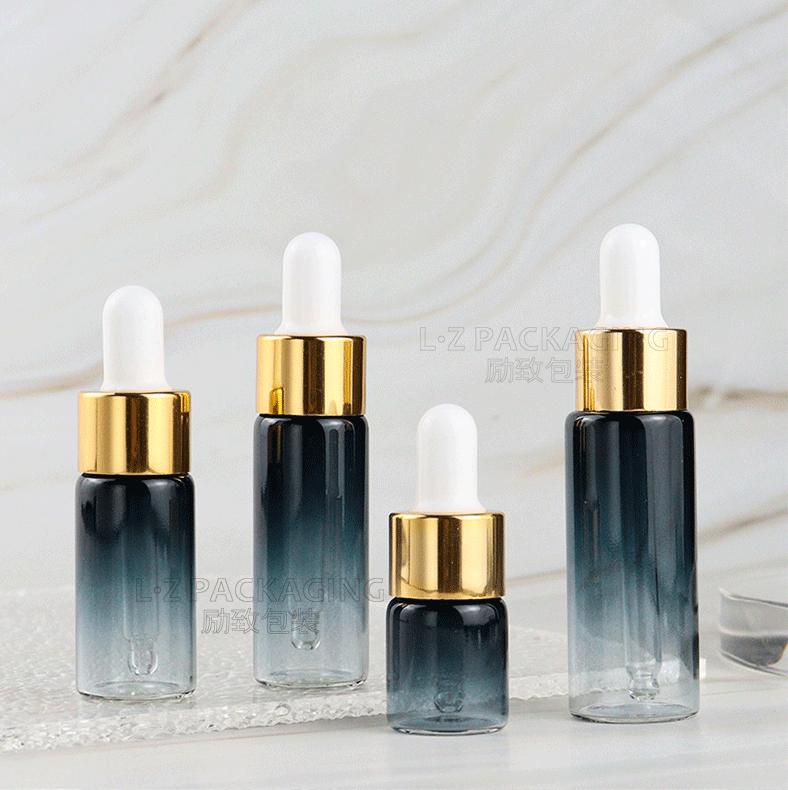 Botella gotero azul degradado en stock 5ml 10ml botella para líquido 15ml gotero de aluminio electroquímico botella gotero para perfume