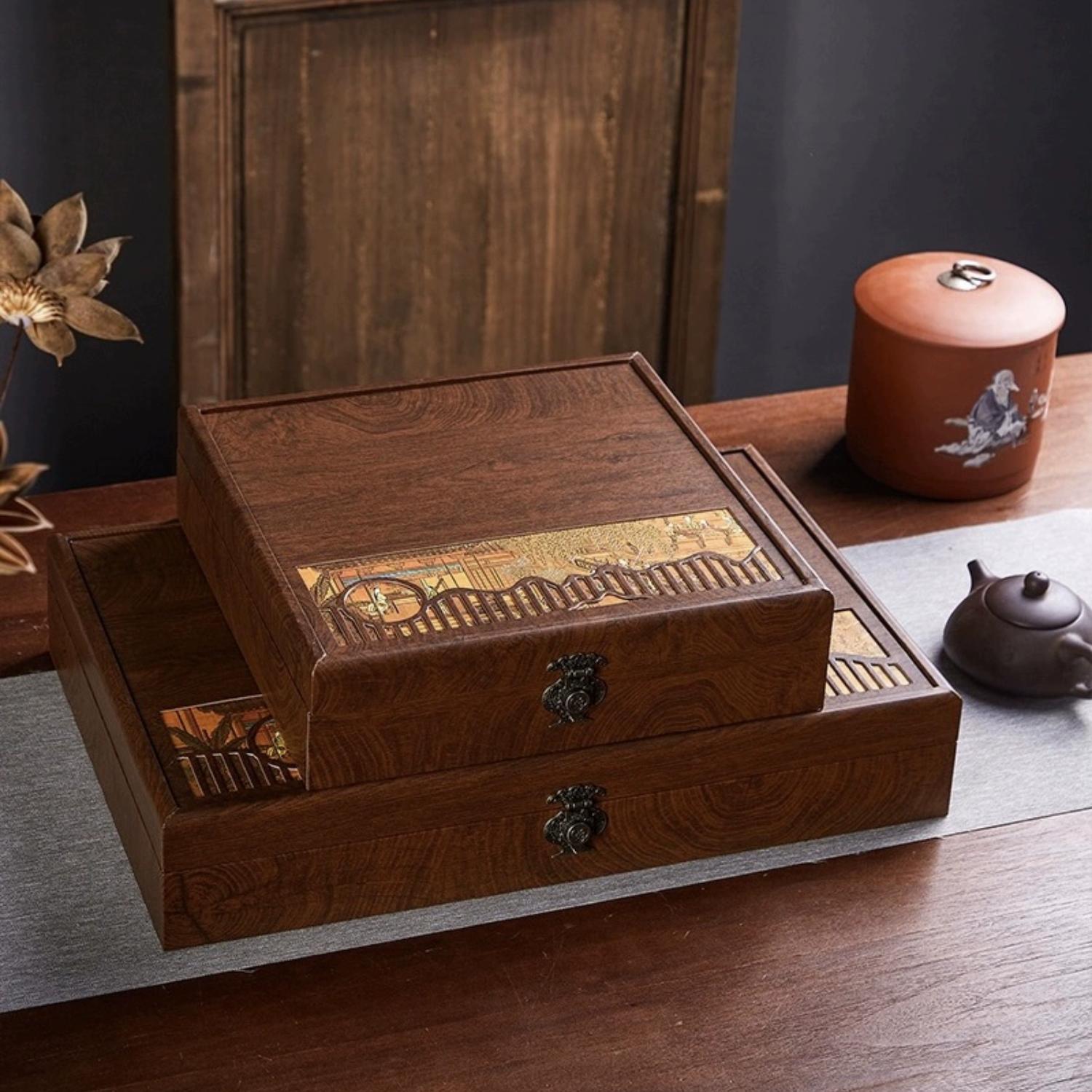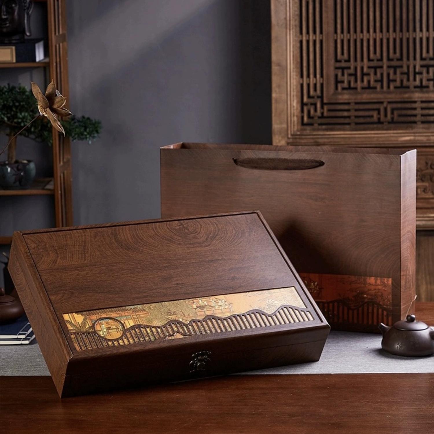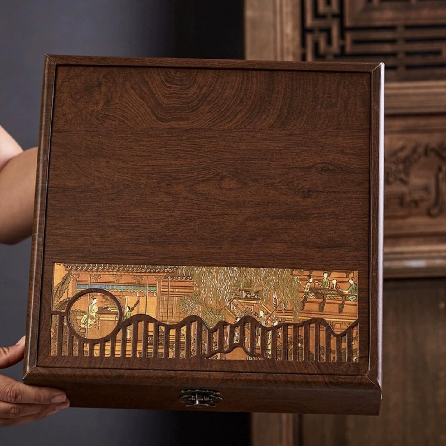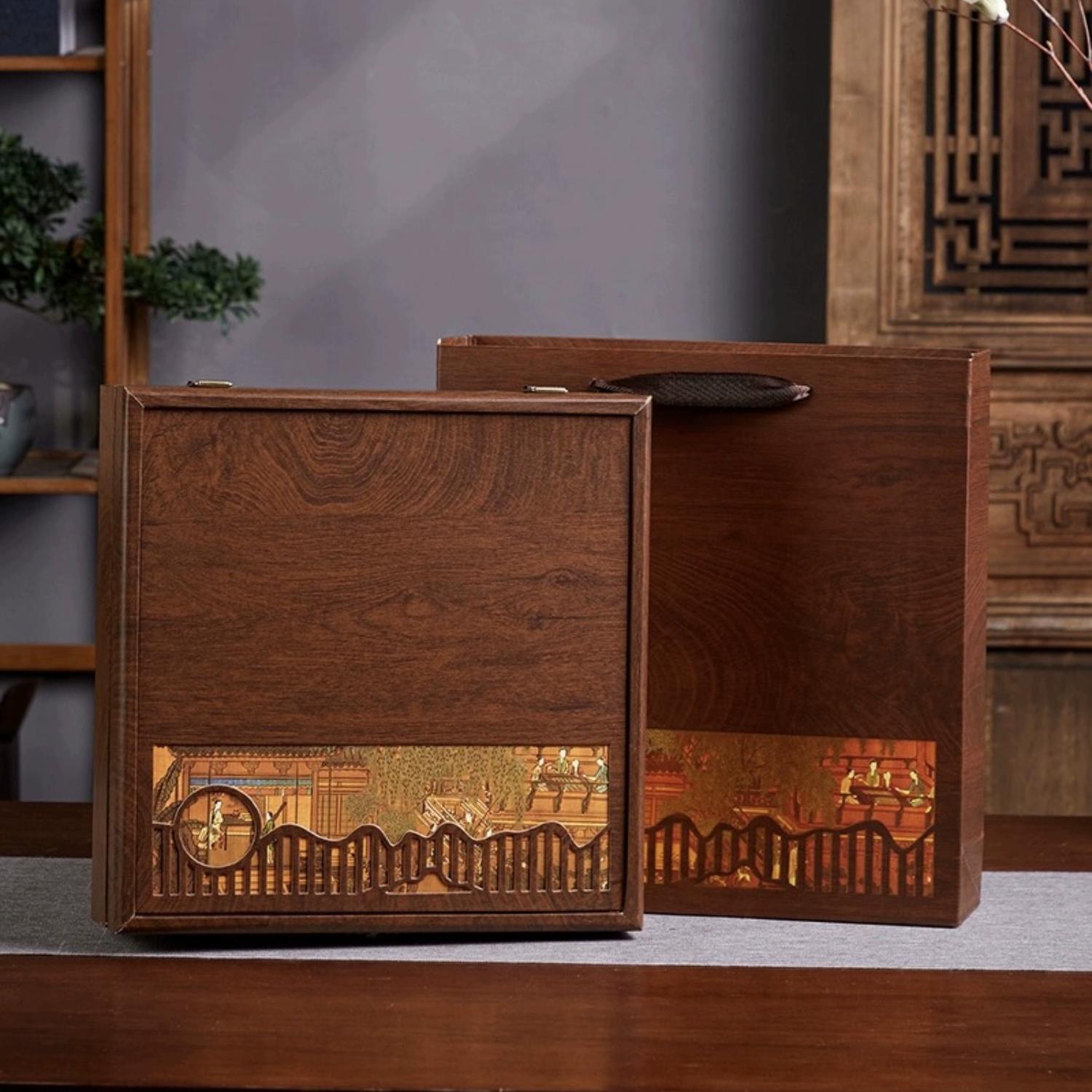 Caja de regalo de pastel individual de 200 g con ventana de madera, caja de embalaje para pastel de té de 357 g, caja de embalaje para té blanco Fuding Pu'er
