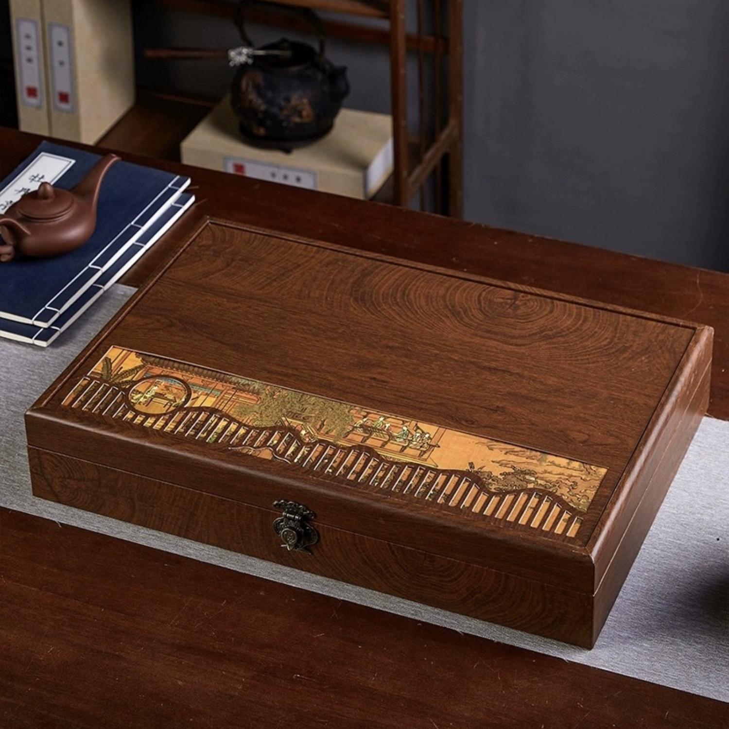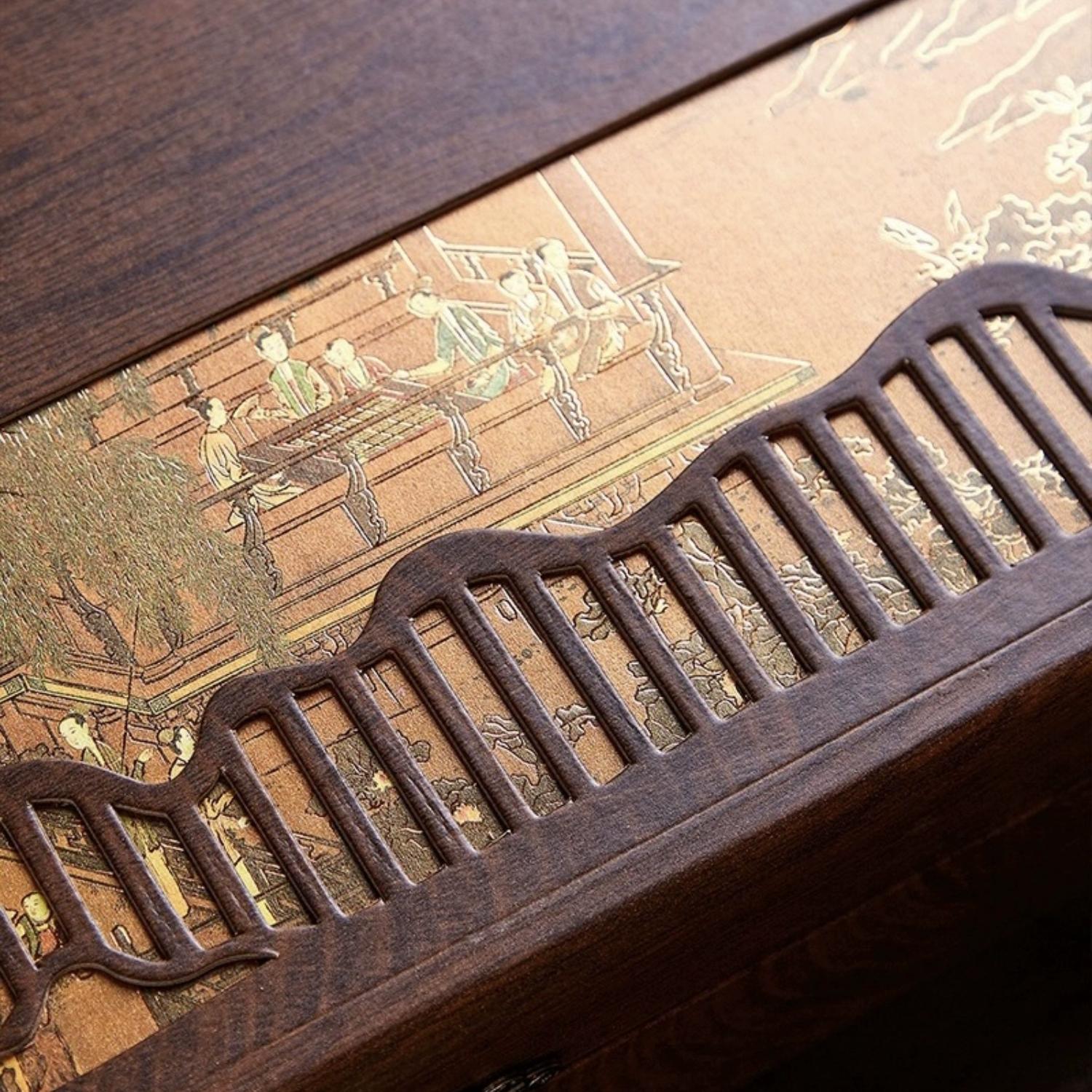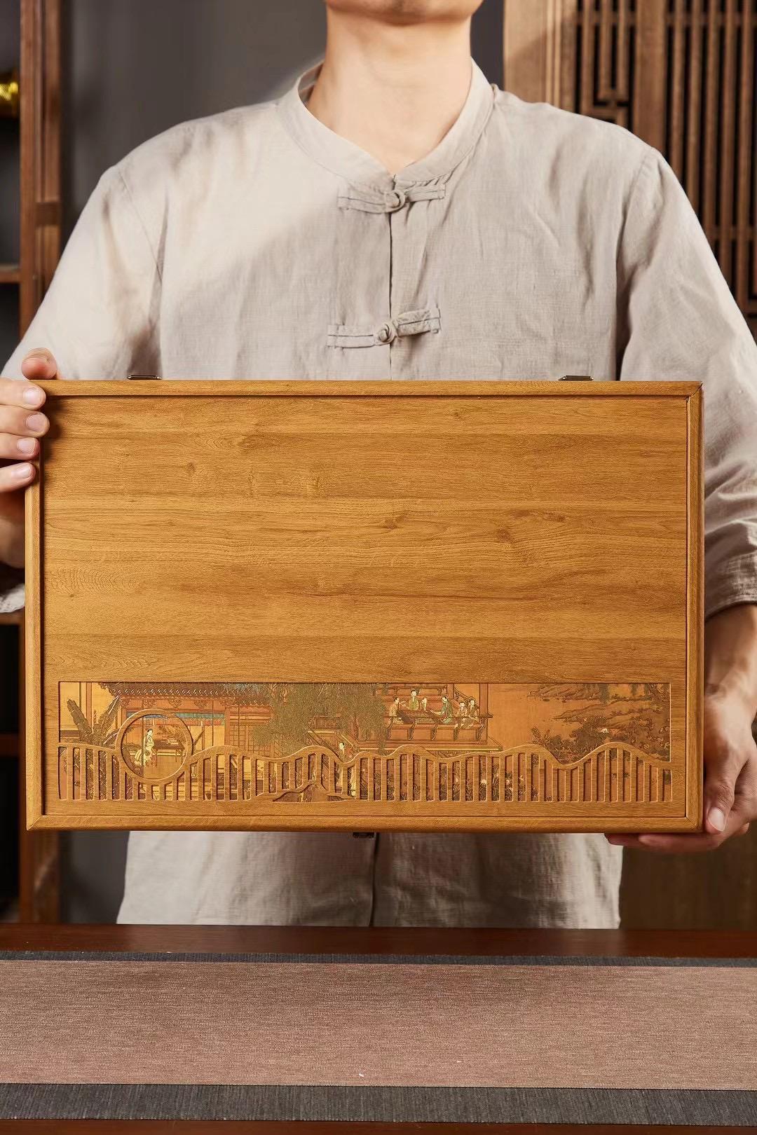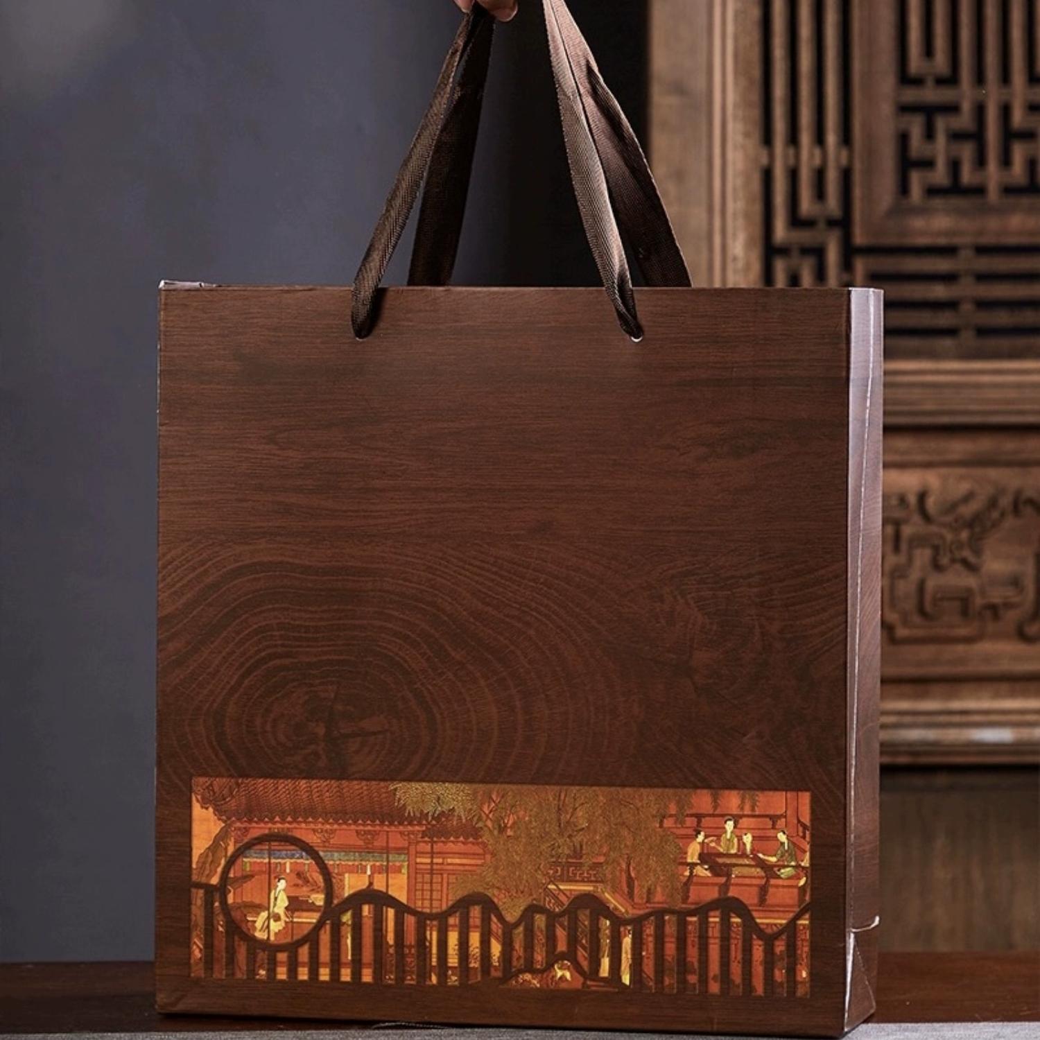 Qinqi picture imitation wood art 200/357g single cake empty box carton without tea, Qinqi picture imitation ba...