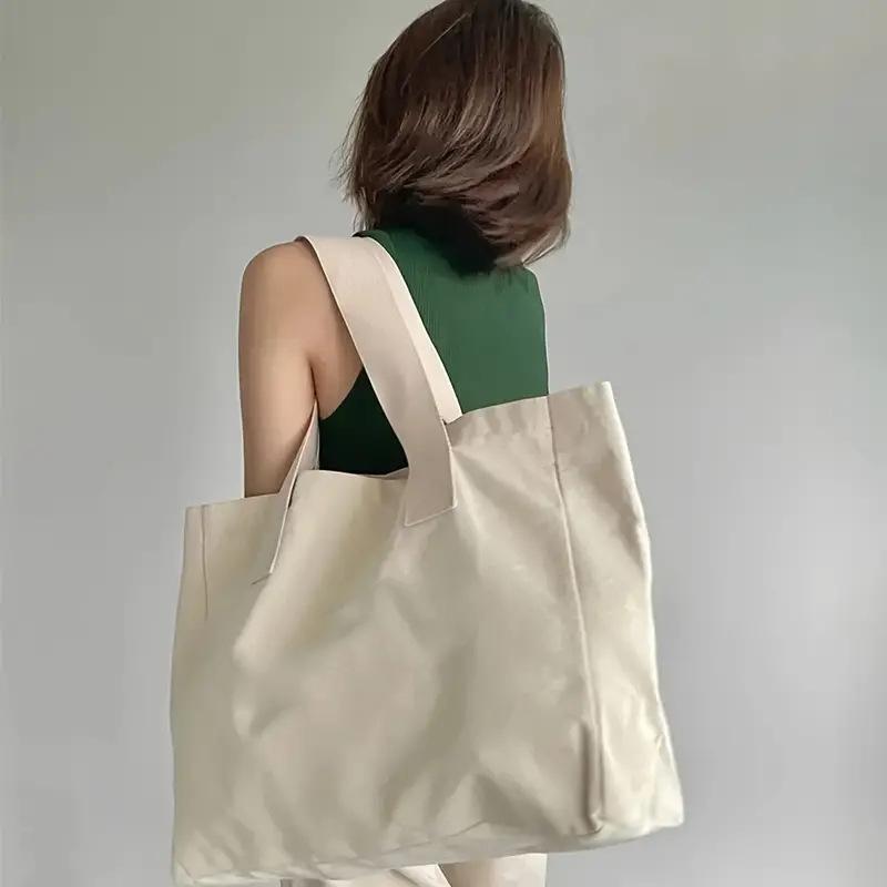 Compra Bolso de Lona Artístico de Gran Capacidad, Moderno, Versátil, de Color Sólido, Bolso de Hombro, Bolso de Mano, Bolsa de Compras Ecológica, Bolsa de Algodón, Almacenamiento al por mayor en Joom.pro