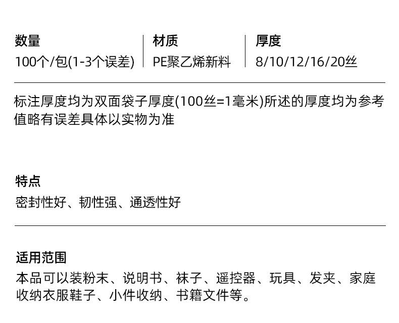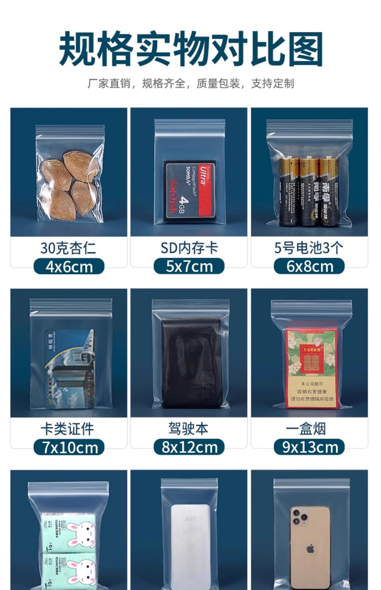 Bolsa Ziplock Venta al por Mayor Espesor Almacenamiento Impermeable Conservación de Alimentos Joyería Sello Bolsa de Embalaje de Plástico Transparente Bolsa Sello