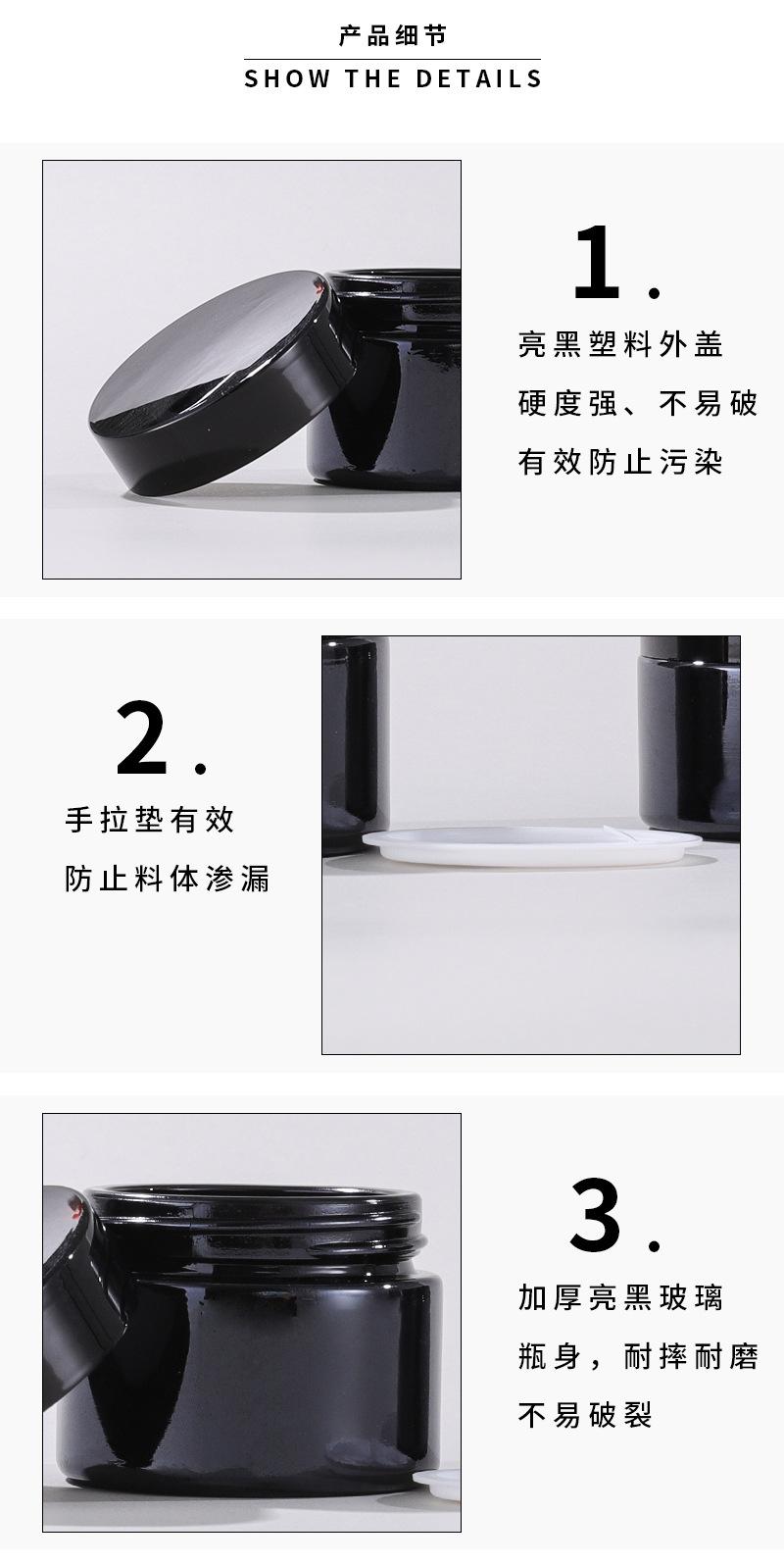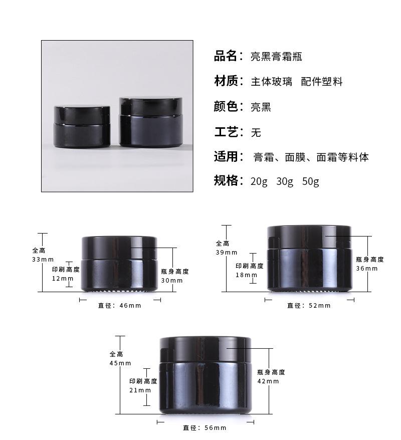 Caja Lista para Entrega Transfronteriza 5-50g Frasco de Crema de Vidrio Negro Frasco de Crema Facial Contenedor de Crema Contenedor de Crema Facial Frasco Cosmético