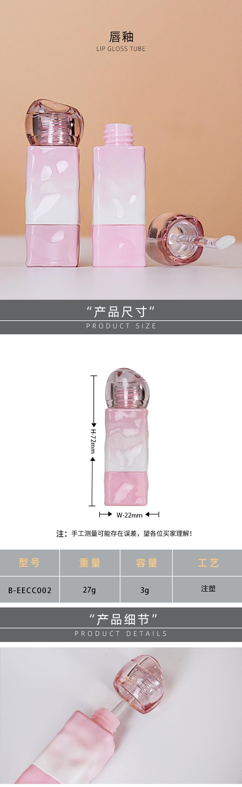 Tubo de Brillo Labial con Forma Especial 3g Tubo Giratorio Rosa Degradado Glaseado Labial Tubo para Empaque Cosmético Corrugado con Agua Tubo Vacío