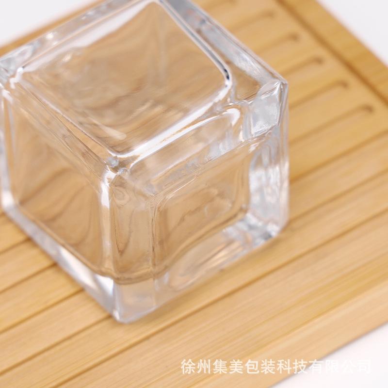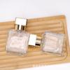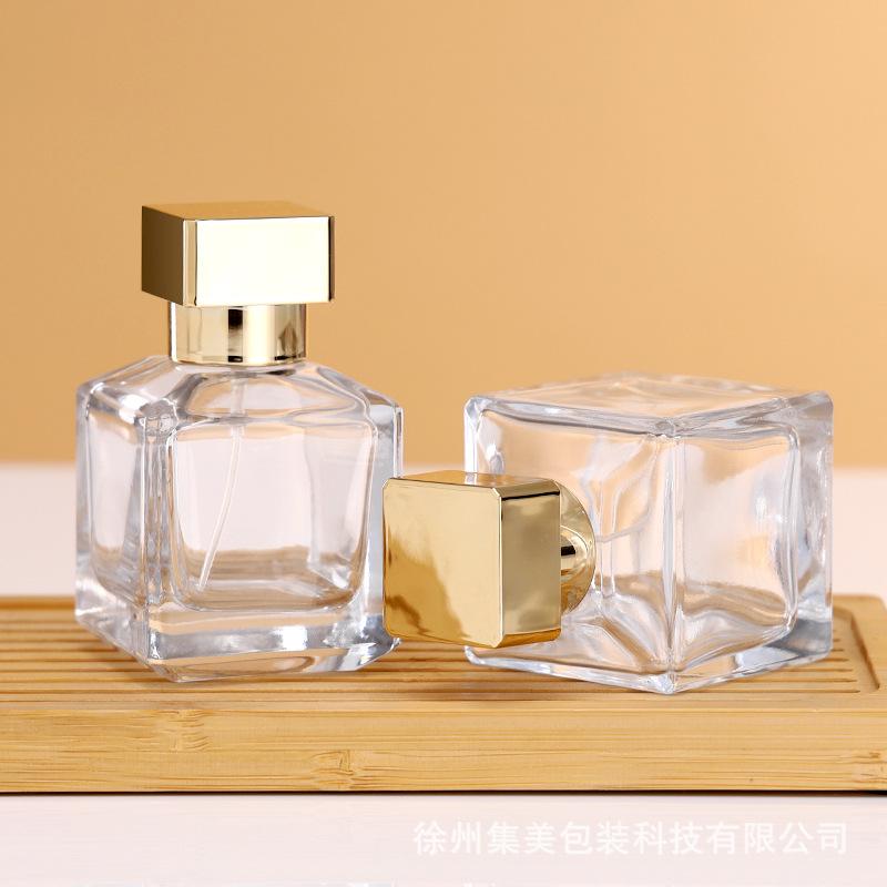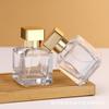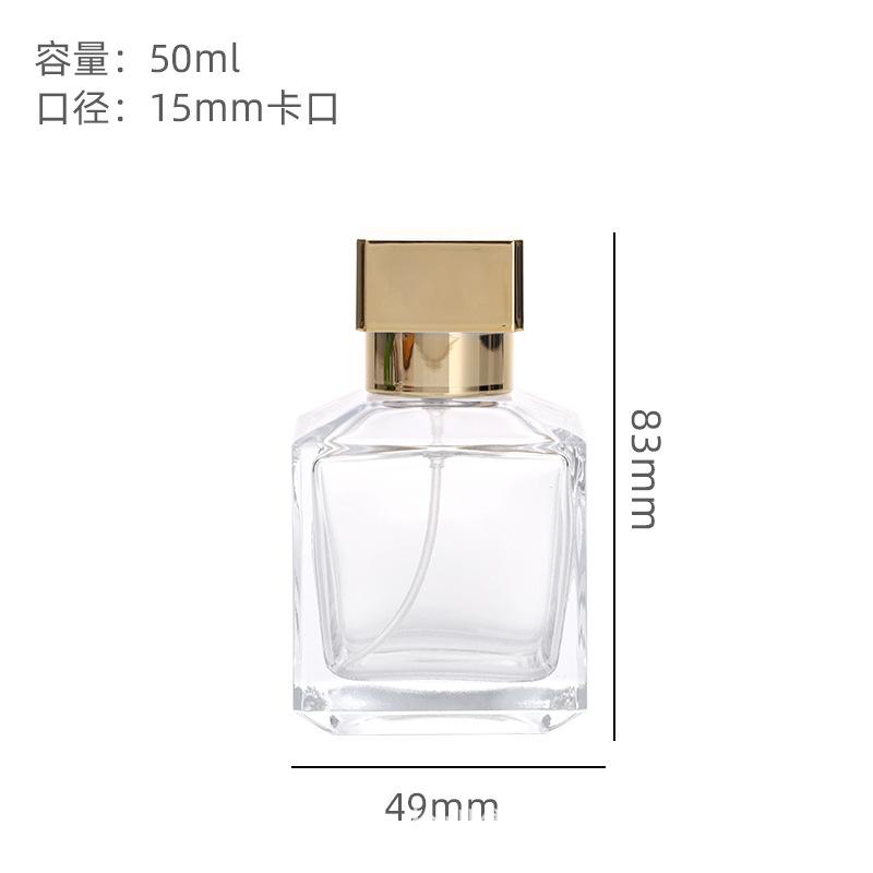 Venta al por mayor en stock, botella de perfume de 50 ml, botella vacía de vidrio transparente cuadrada, 15 botellas de perfume de prensa portátil de bayoneta